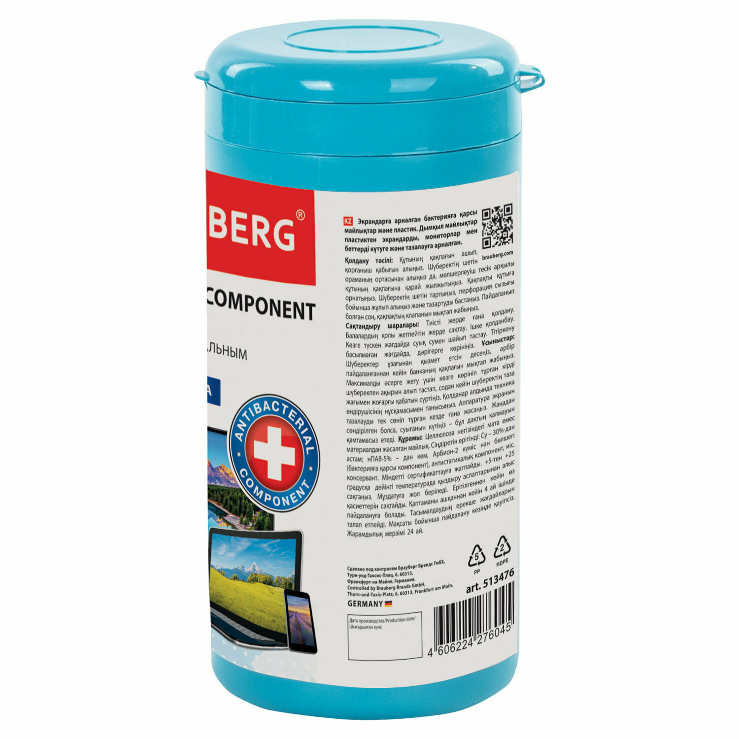Салфетки антибактериальные для мониторов И пластика, плотные, BRAUBERG, 13x17 см, 100 шт., 513476