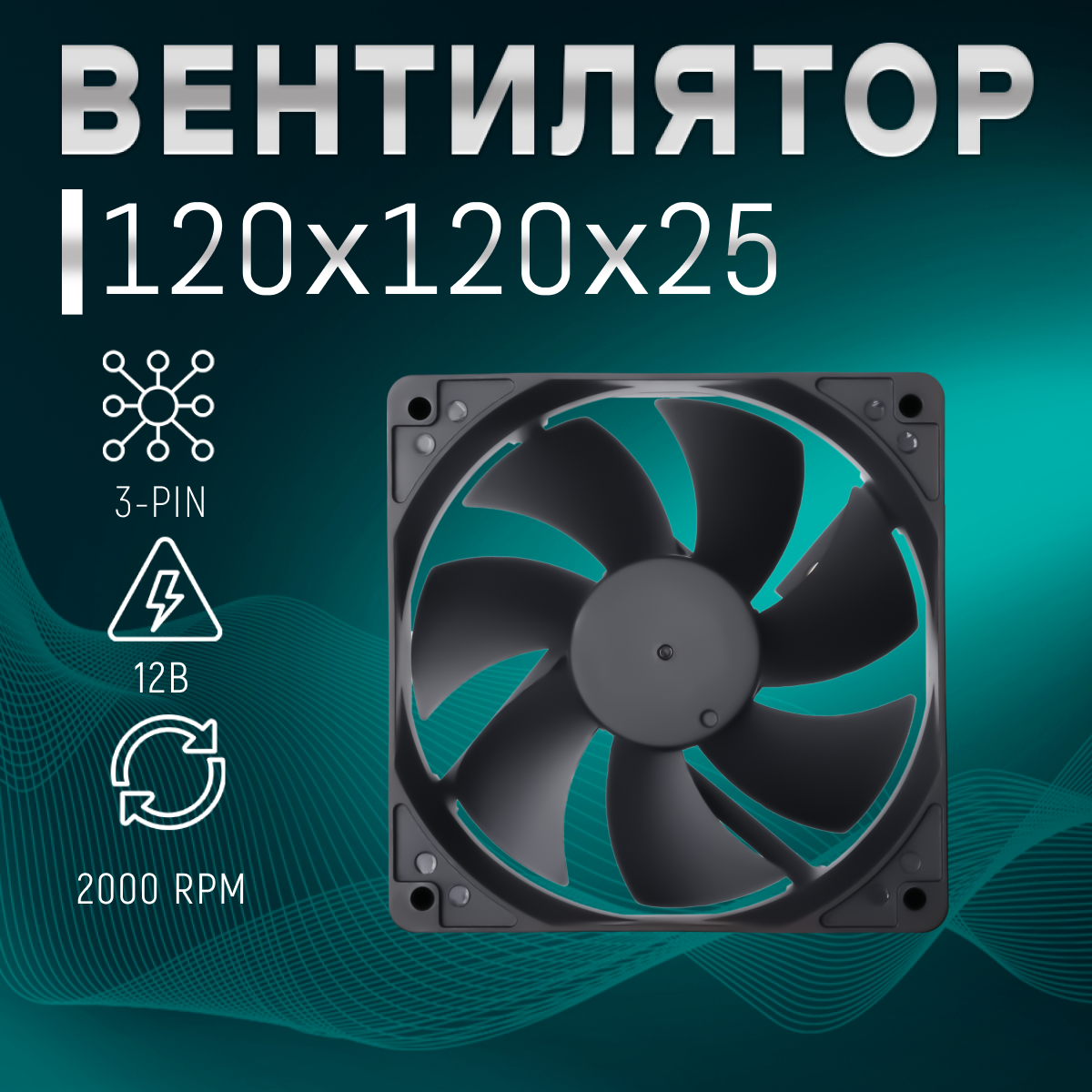 Вентилятор охлаждения корпуса ПК/процессора/ТВ приставки/радиатора 120х120х25мм, бесшумный кулер 28ДБ с подключением 3-Pin 12В, длина кабеля 35см