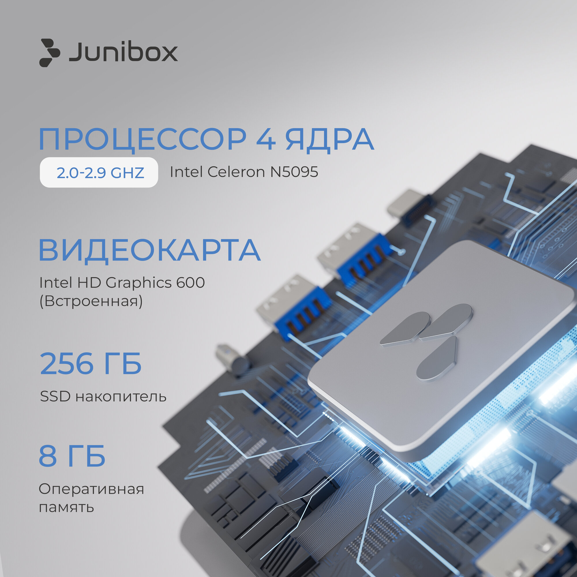 Мини ПК JuniBox К3+ DDR 8gb/SSD 128gb, Intel Celeron N5095 (2.0 ГГц), Intel HD Graphics 600, Windows 11 Pro, черный