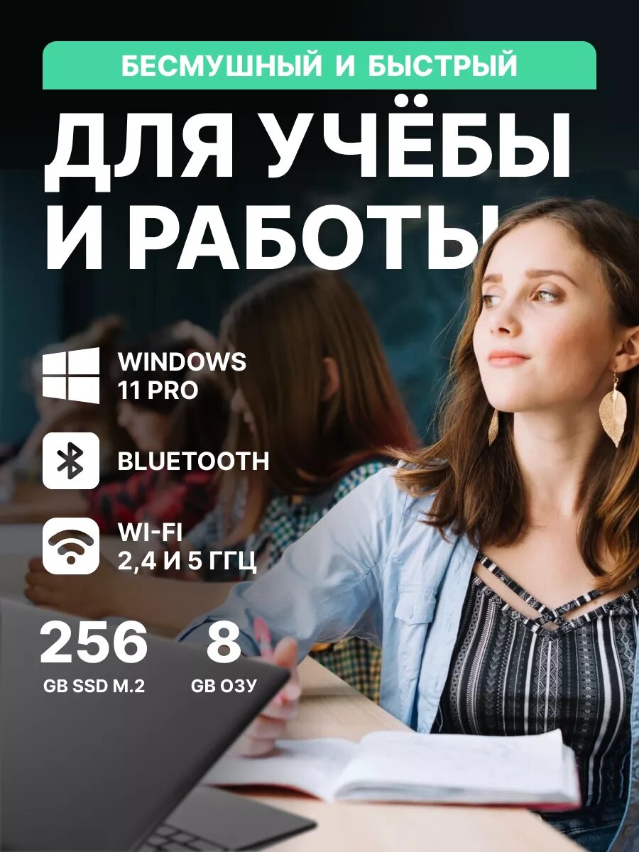 Ноутбук Intel N5095 (до 2.9 GHz), RAM 32 GB, SSD 128 GB, Windows 11 Pro