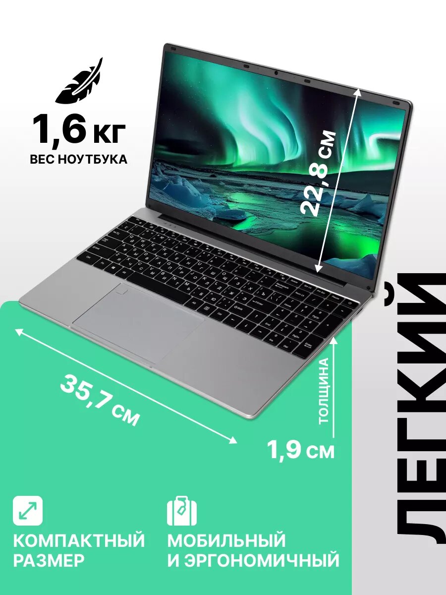 Ноутбук 15.6 Intel N5095 (до 2.9 GHz), RAM 32 GB, SSD 512 GB, Win 11 Pro