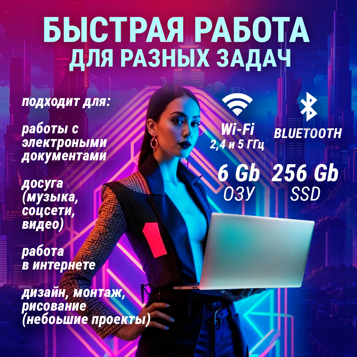 Купить 14" ноутбук Intel N4000 RAM 6 Гб SSD M.2 256 Гб Windows 10 Pro