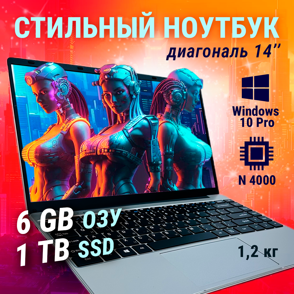 Купить 14" ноутбук Intel N4000 RAM 6 Гб SSD M.2 1 Тб Windows 10 Pro