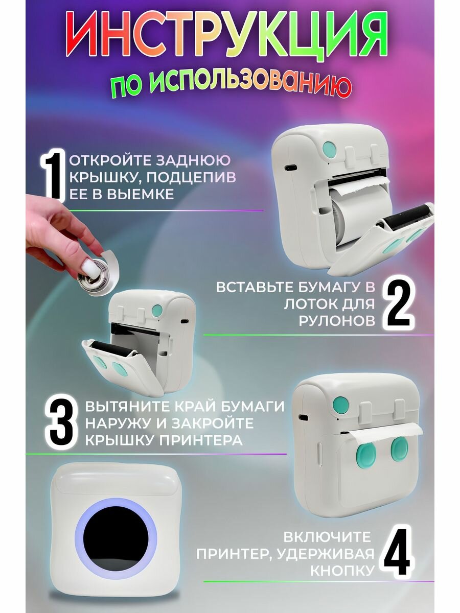 Купить Детский мини принтер для телефона беспроводной, с подсветкой