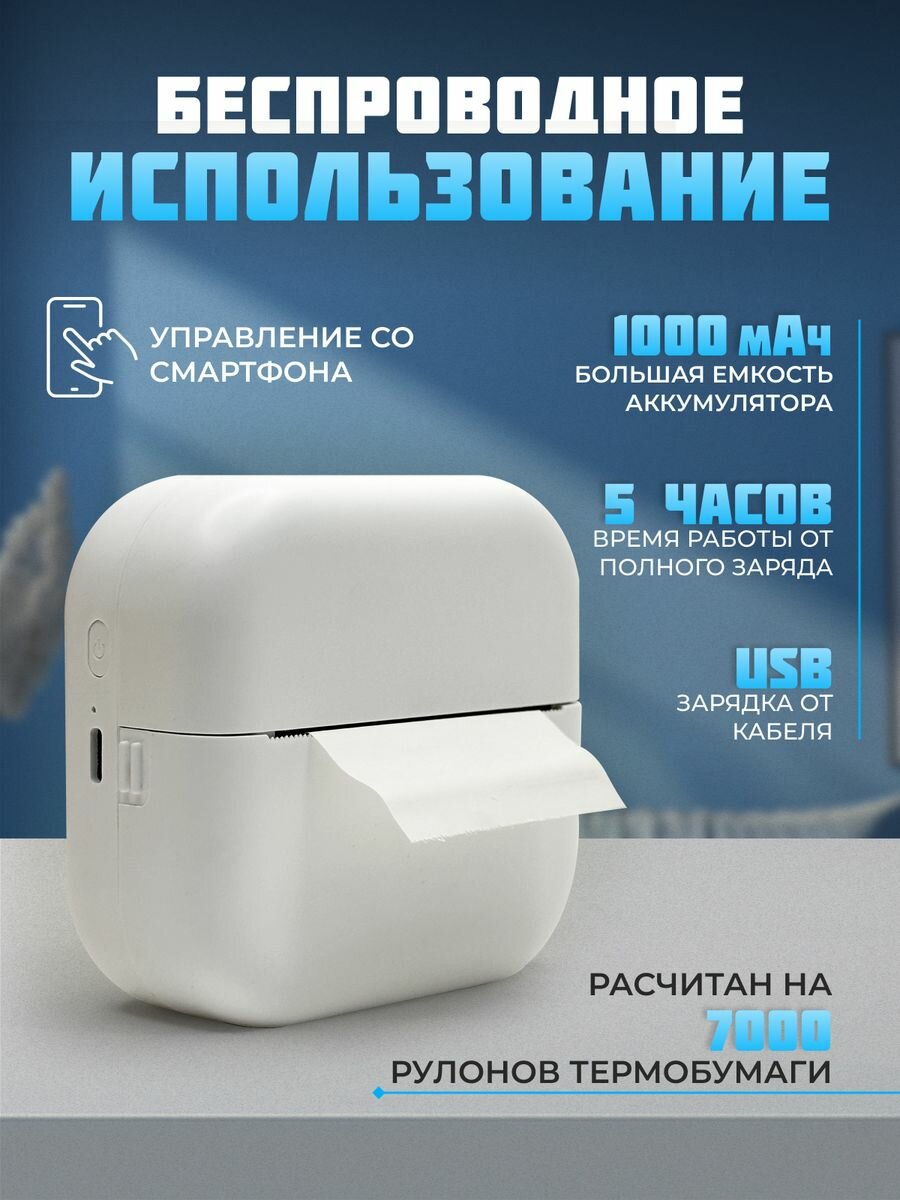 Мини-принтер портативный, Хевель "Белый мишка", термопечать, Bluetooth, USB интересное: