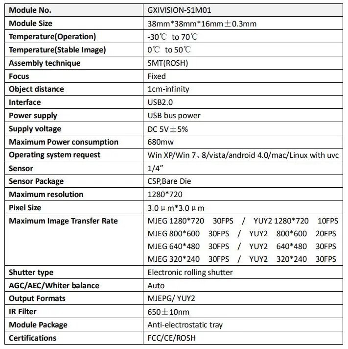 GXIVISION USB-камера 720p для Raspberry Pi, no distortion-3mm