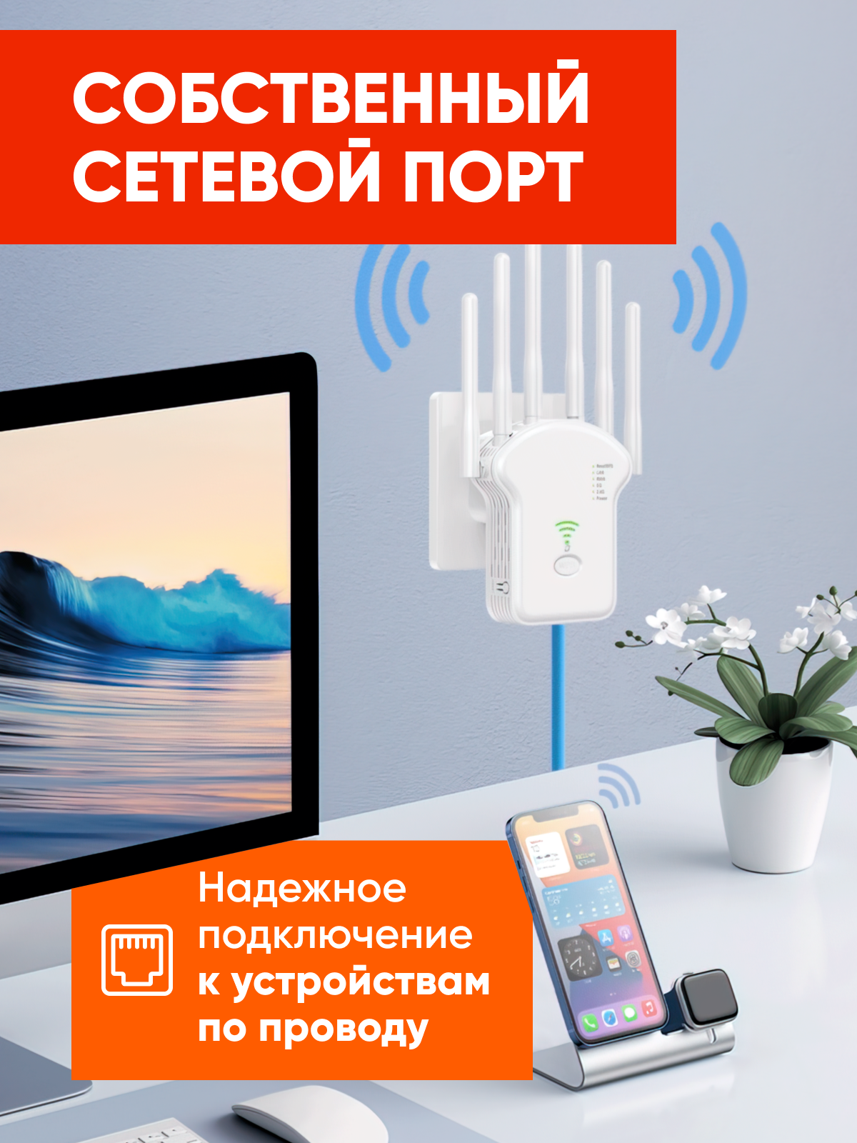 Усилитель wifi сигнала беспроводной в розетку репитер вайфая, цвет белый интересное: