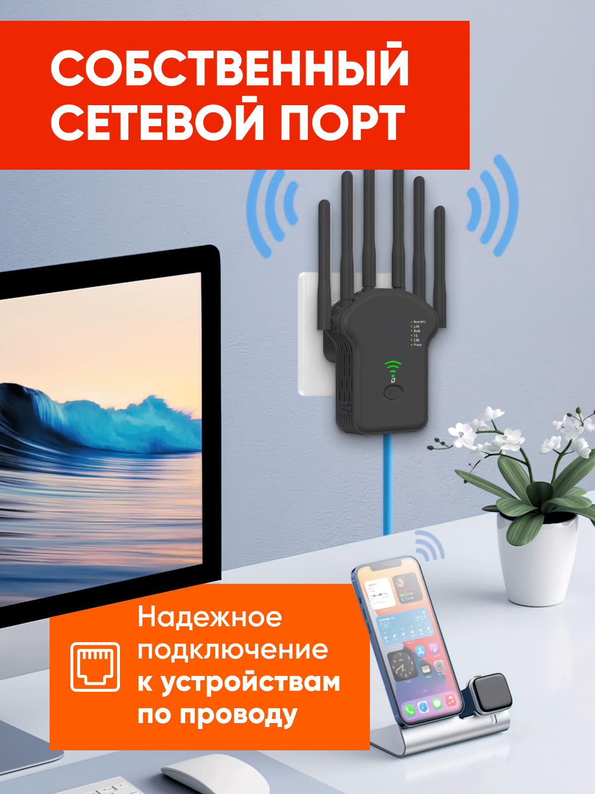 Усилитель сигнала wifi репитер маршрутизатор точка доступа, цвет черный интересное: