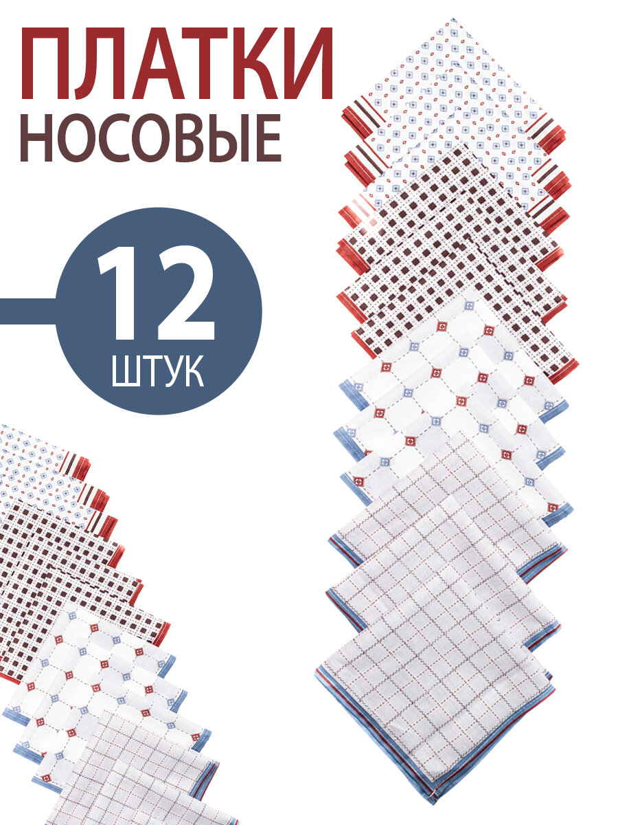Комплект носовых платков, мужские 12 шт. коричневые