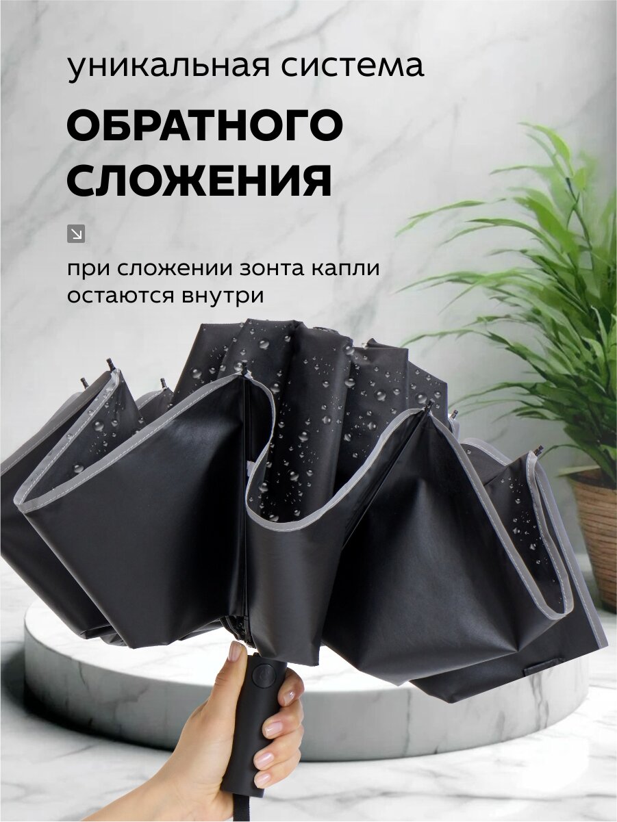 Зонт автомат обратно сложения Leomax, зонт наоборот с системой антиветер, черный