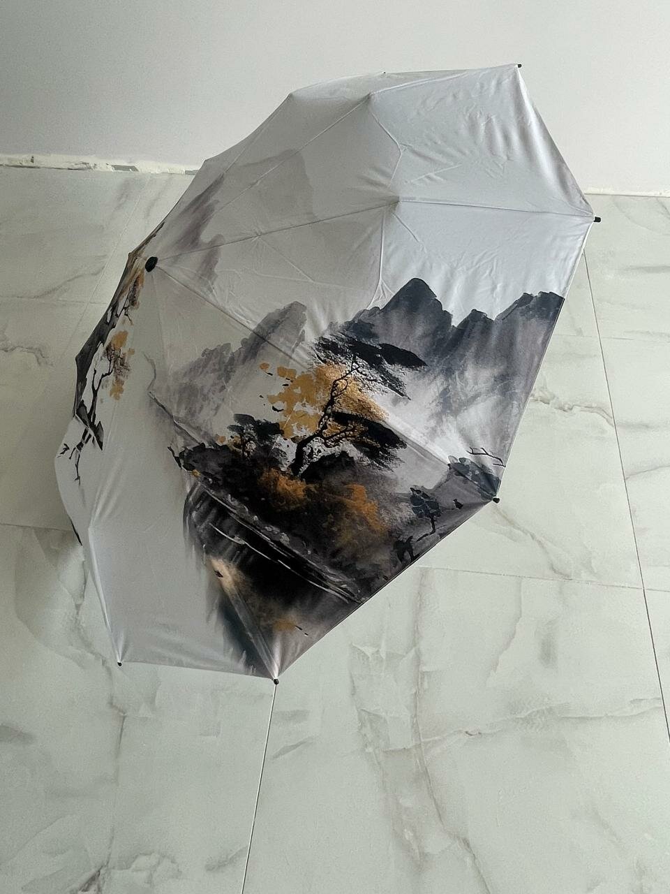 Зонт Лакшми, серый с принтом