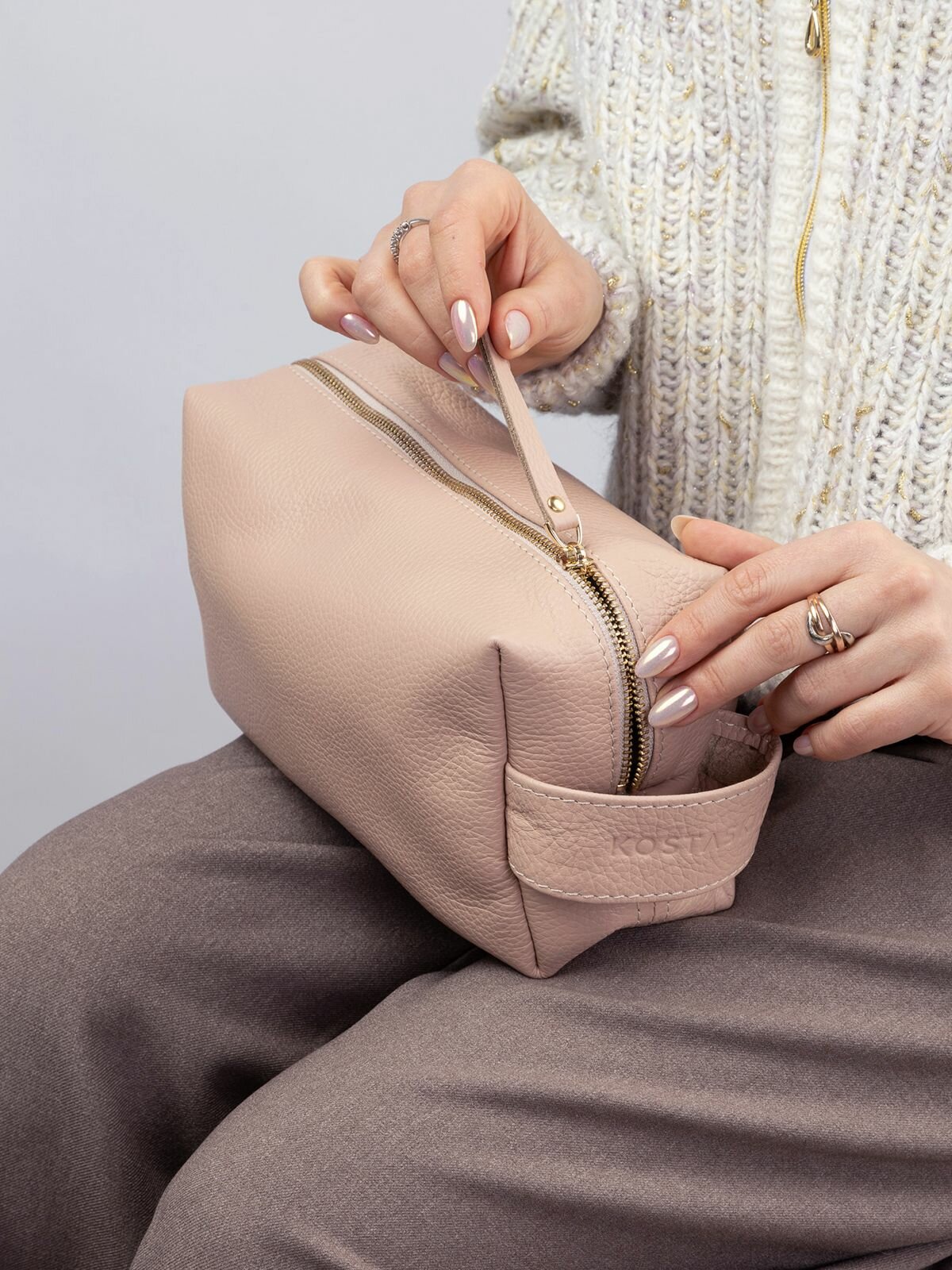 Купить Косметичка KOSTASKIN, 12х15х23 см, , пудровый