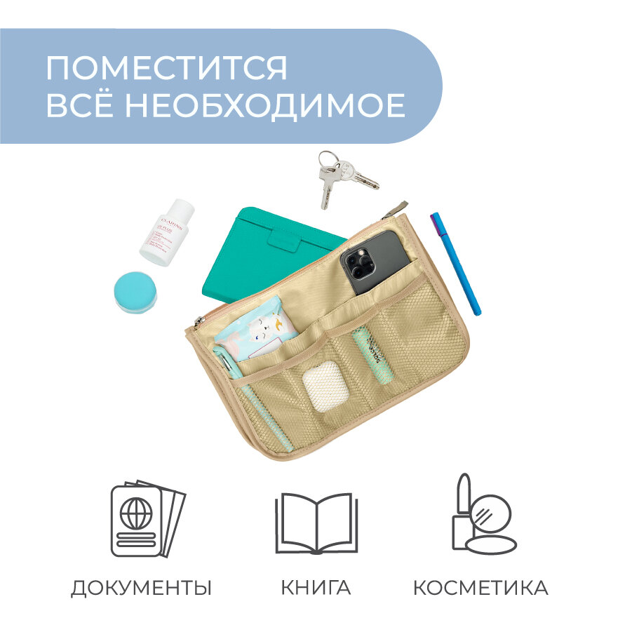 Органайзер для сумки всё на местах, 10х17х28 см, 3 шт., , бежевый интересное: