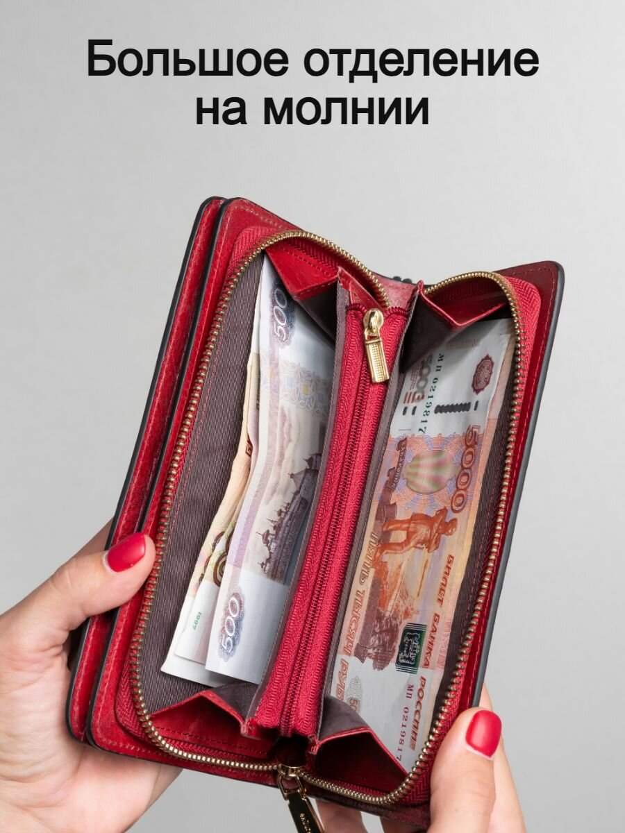 Большой кошелек женский из натуральной кожи для денег, телефона, карт, документов