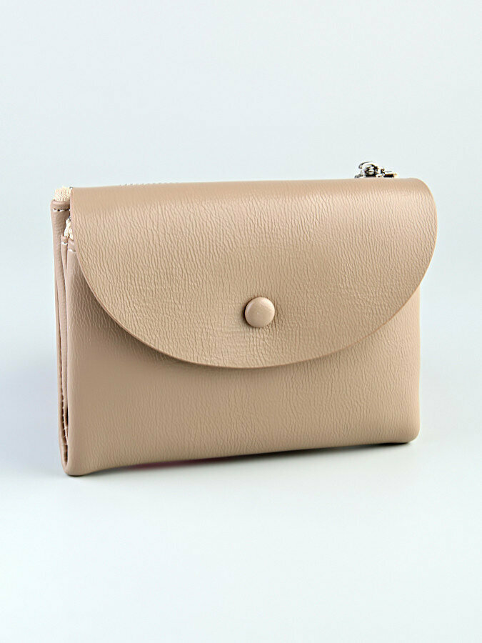 Кошелек женский, экокожа, гладкая фактура, на кнопке, отделения для карт и монет, внешний карман, бежевый