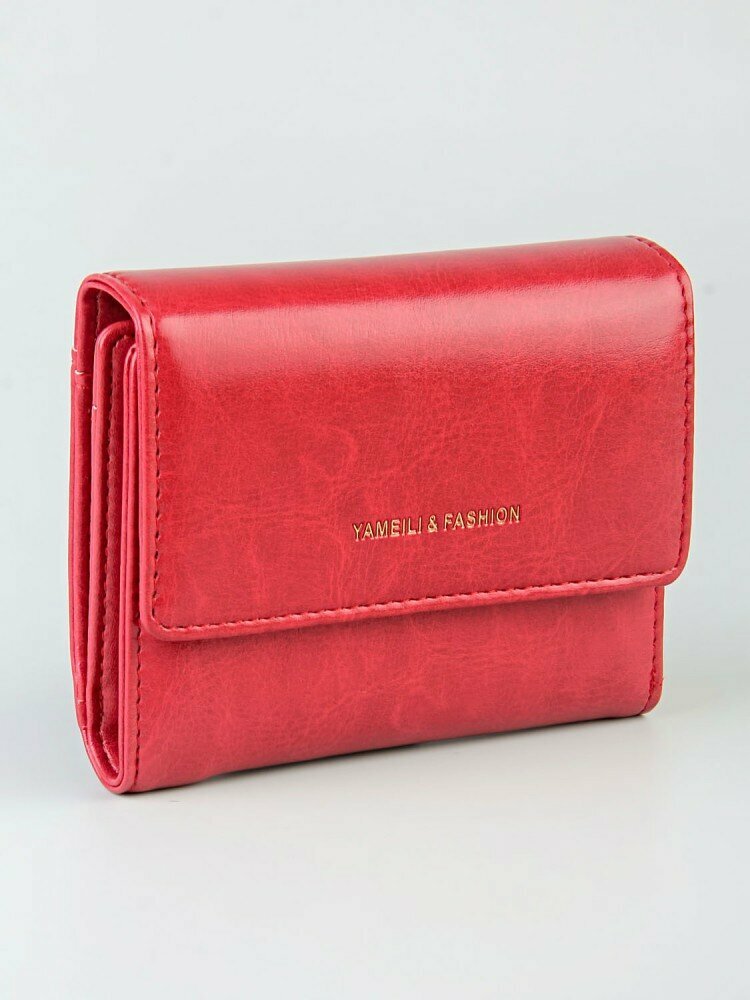 Кошелек женский, экокожа, гладкая фактура, на кнопке, отделения для карт и монет, скрытый карман, прозрачное окошко, красный