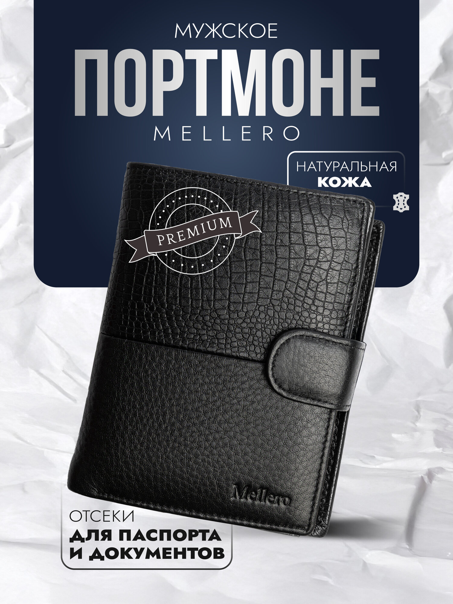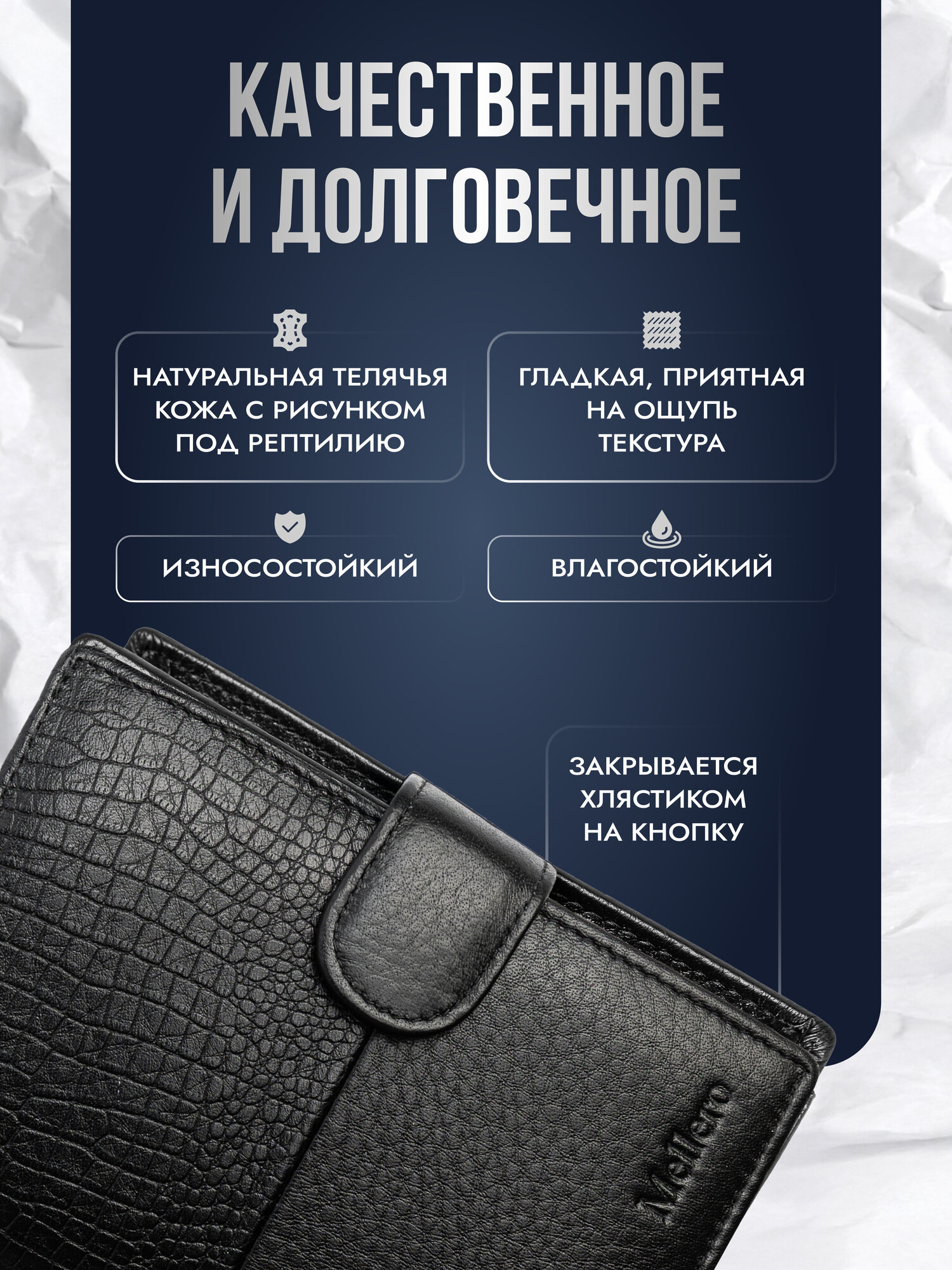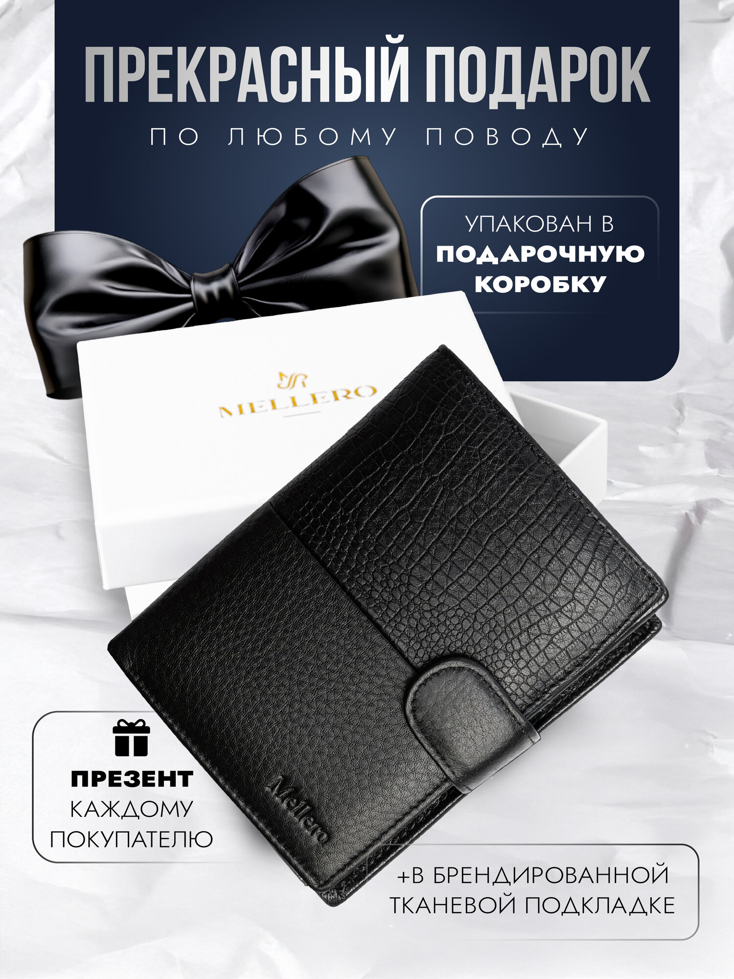 Кошелек Mellero, фактура под рептилию, черный интересное: