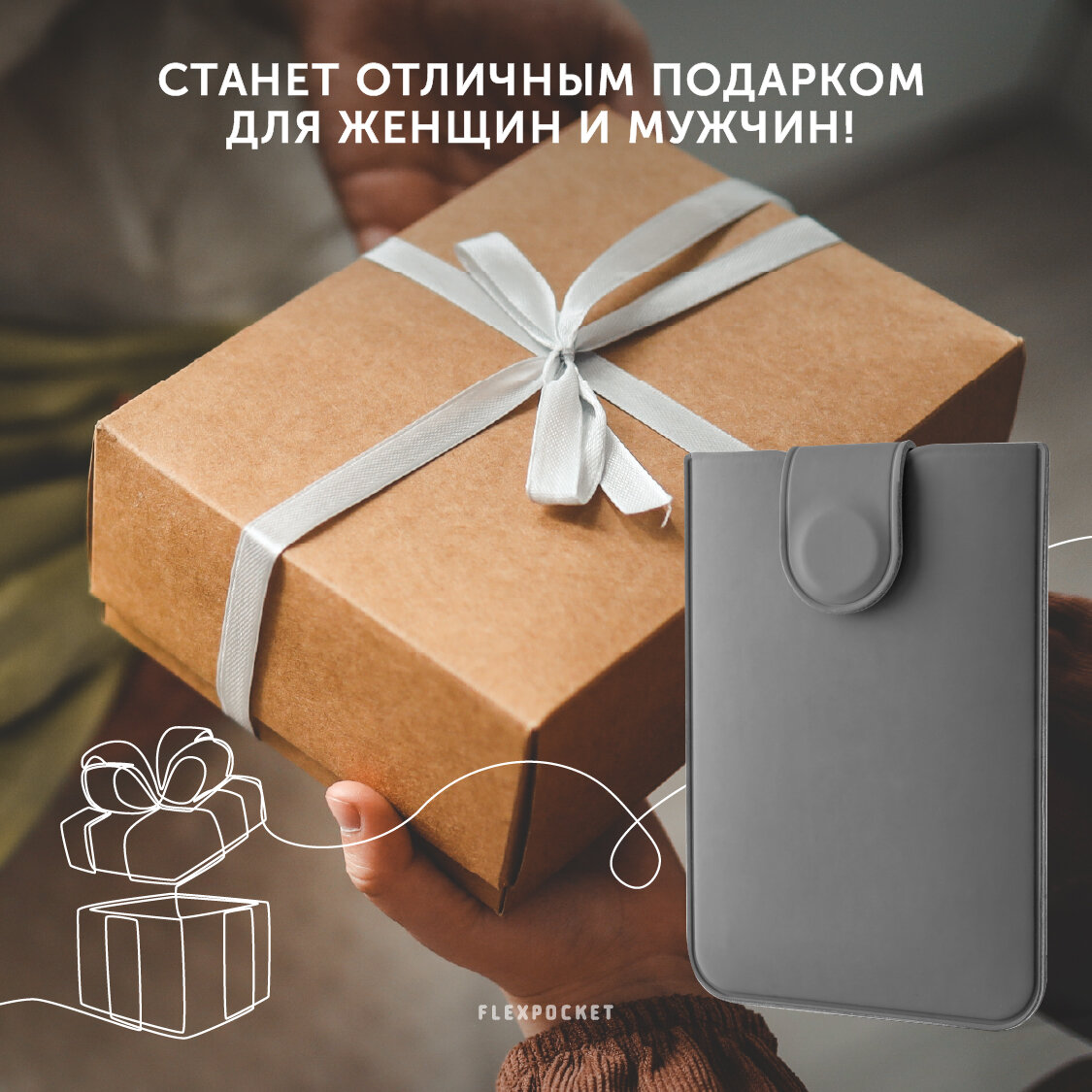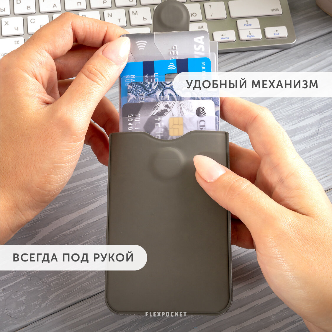 Картхолдер Flexpocket, серый интересное: