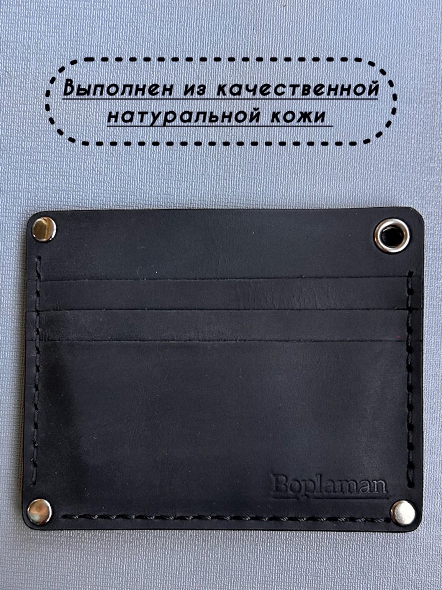 Картхолдер, держатель ручной работы из натуральной кожи для банковских карт черный