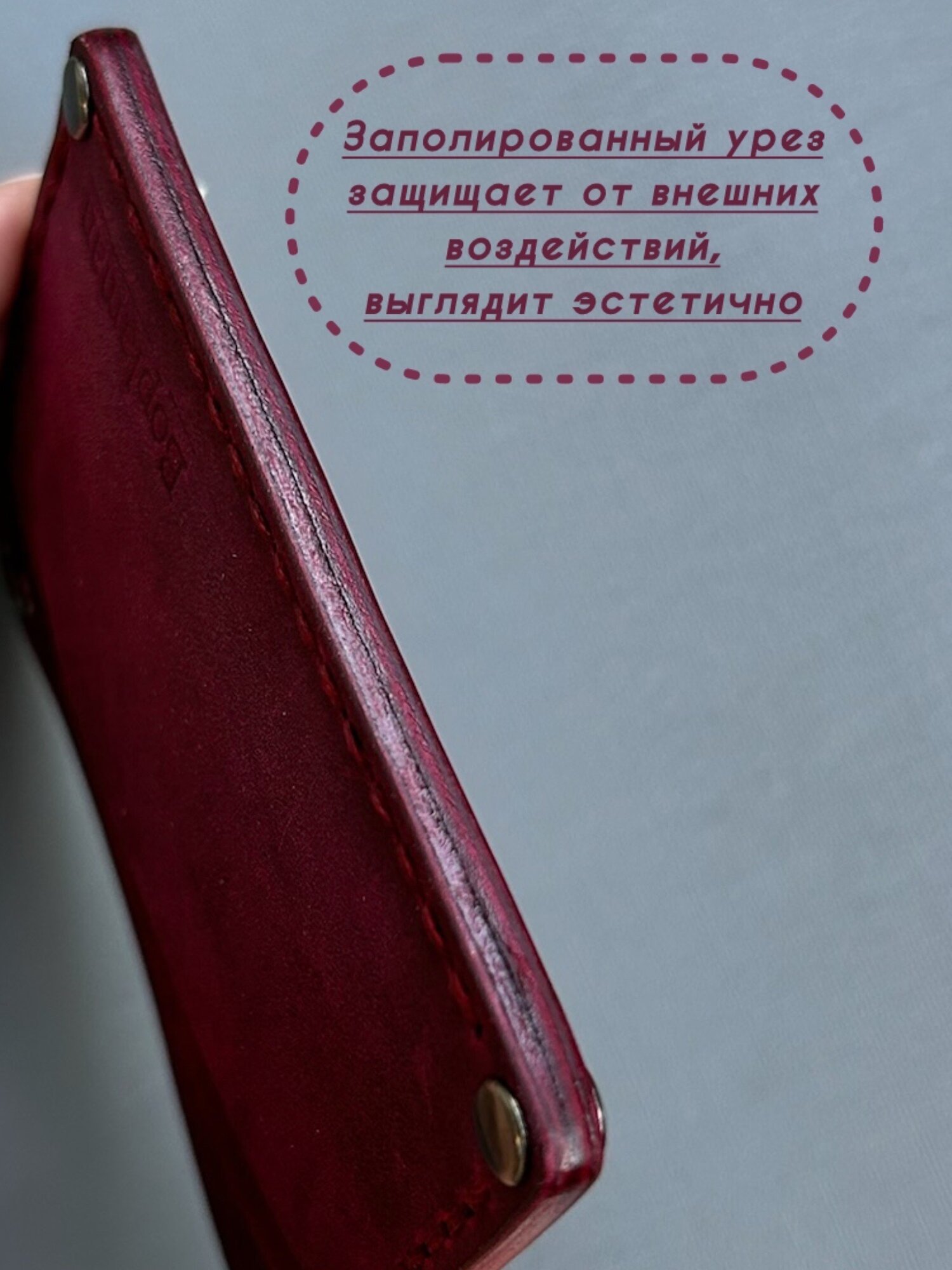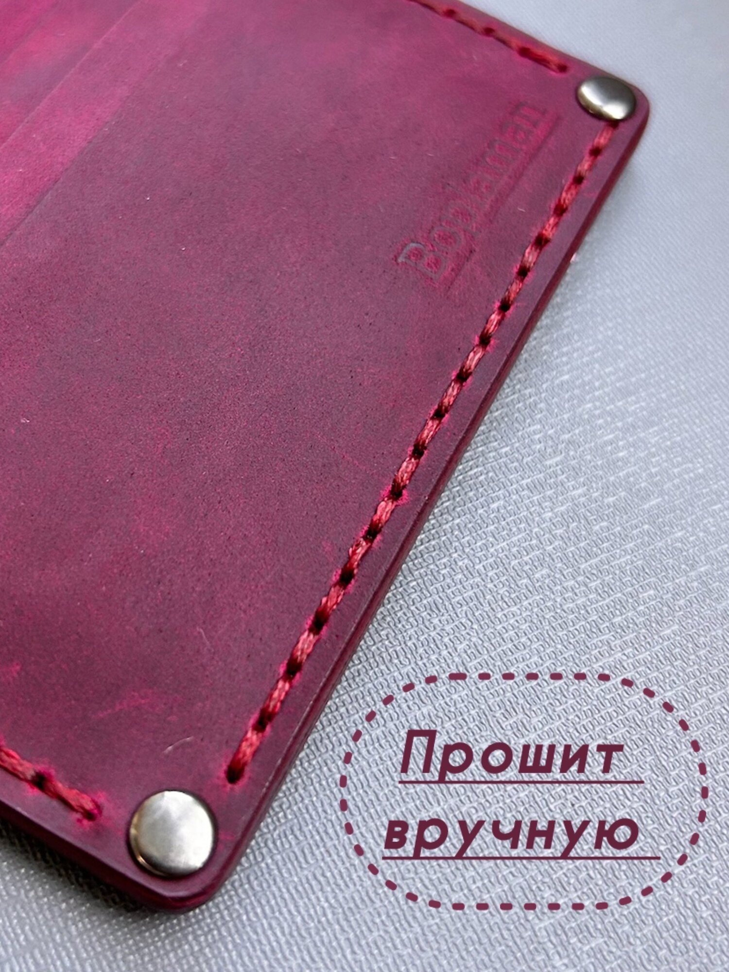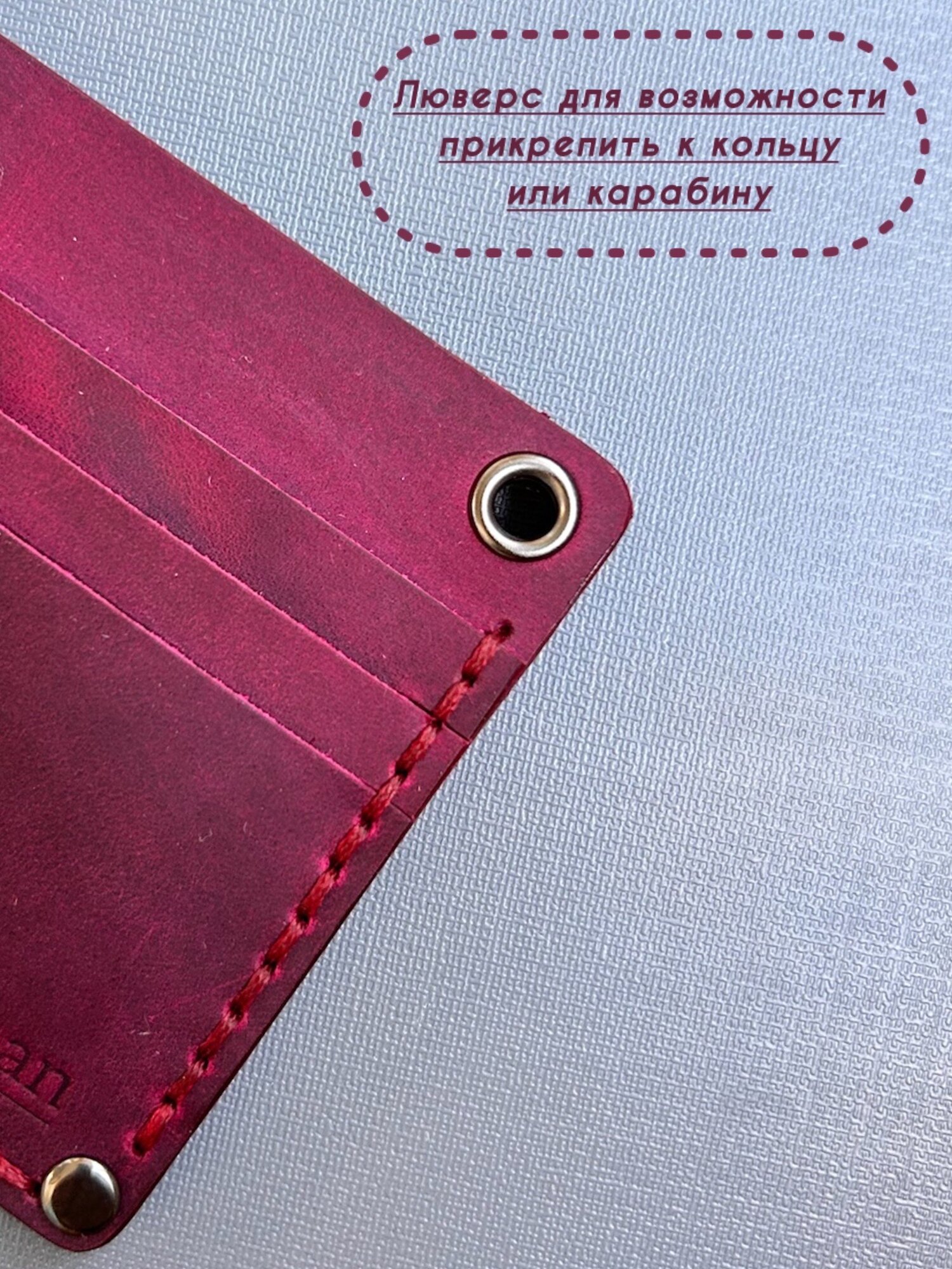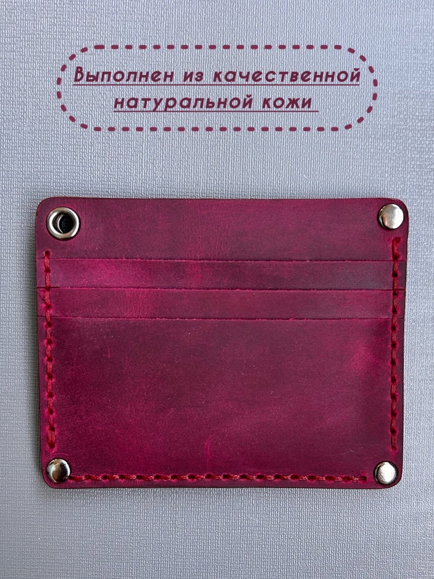 Картхолдер, держатель ручной работы из натуральной кожи для банковских карт бордовый