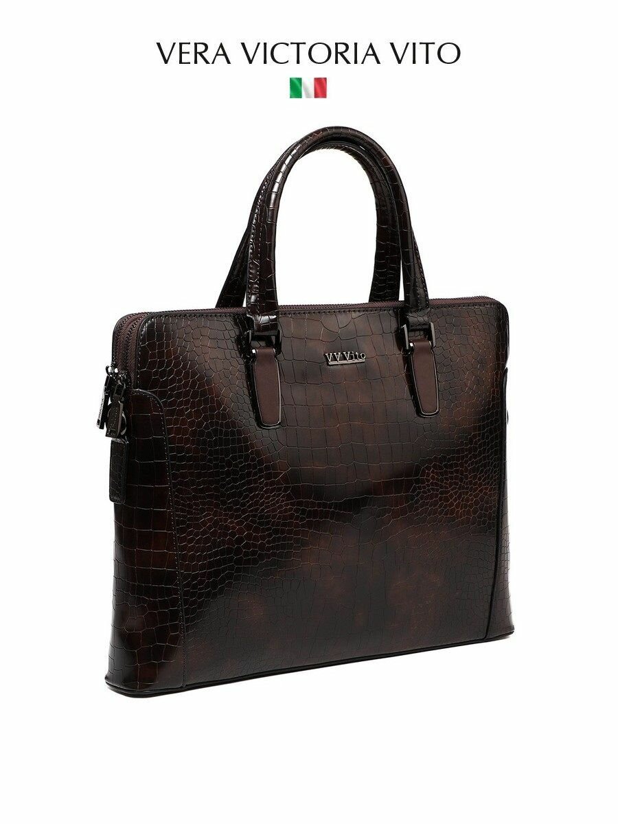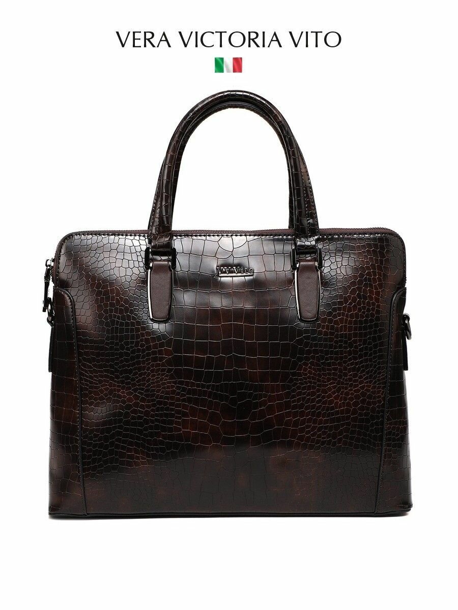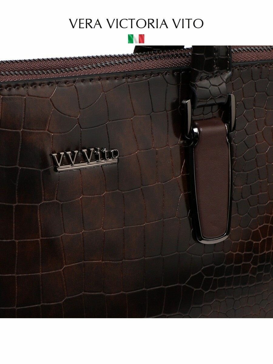 Портфель Vera Victoria Vito, фактура под рептилию, коричневый интересное: