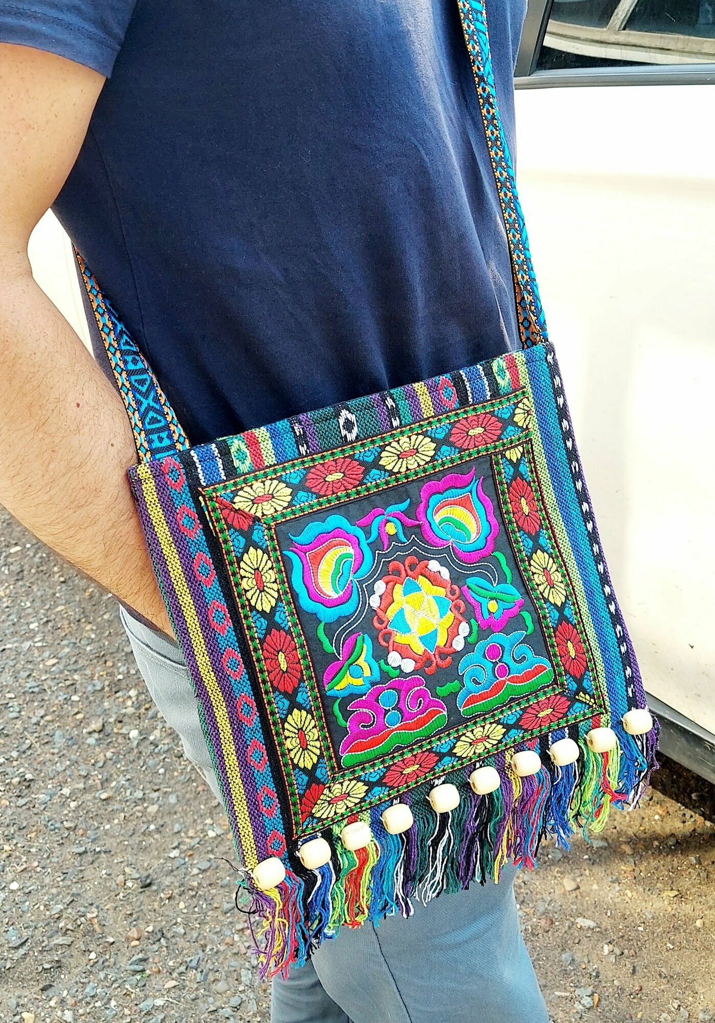 Сумка шопер тканевая с вышивкой цветы в этно стиле