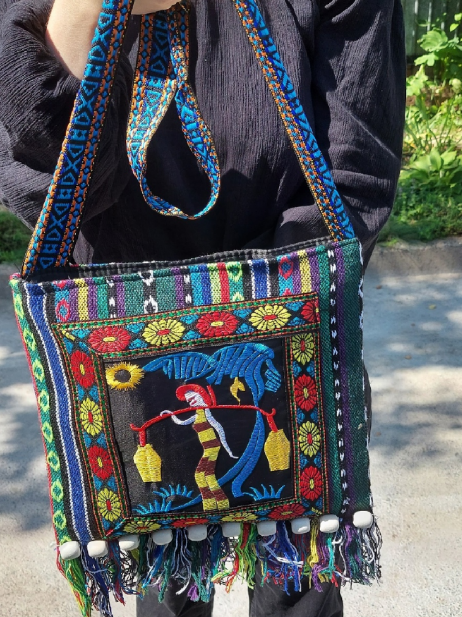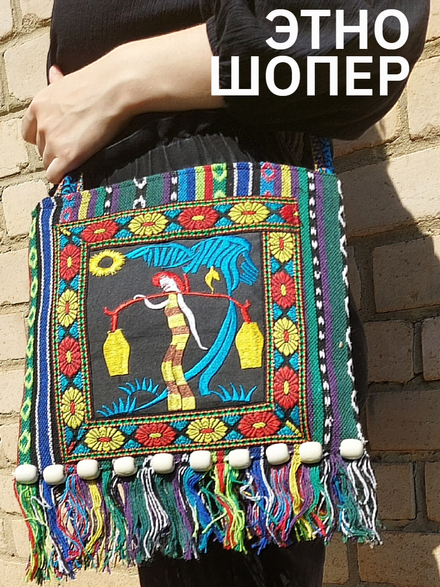 Сумка шопер тканевая с вышивкой в этно стиле коромысло