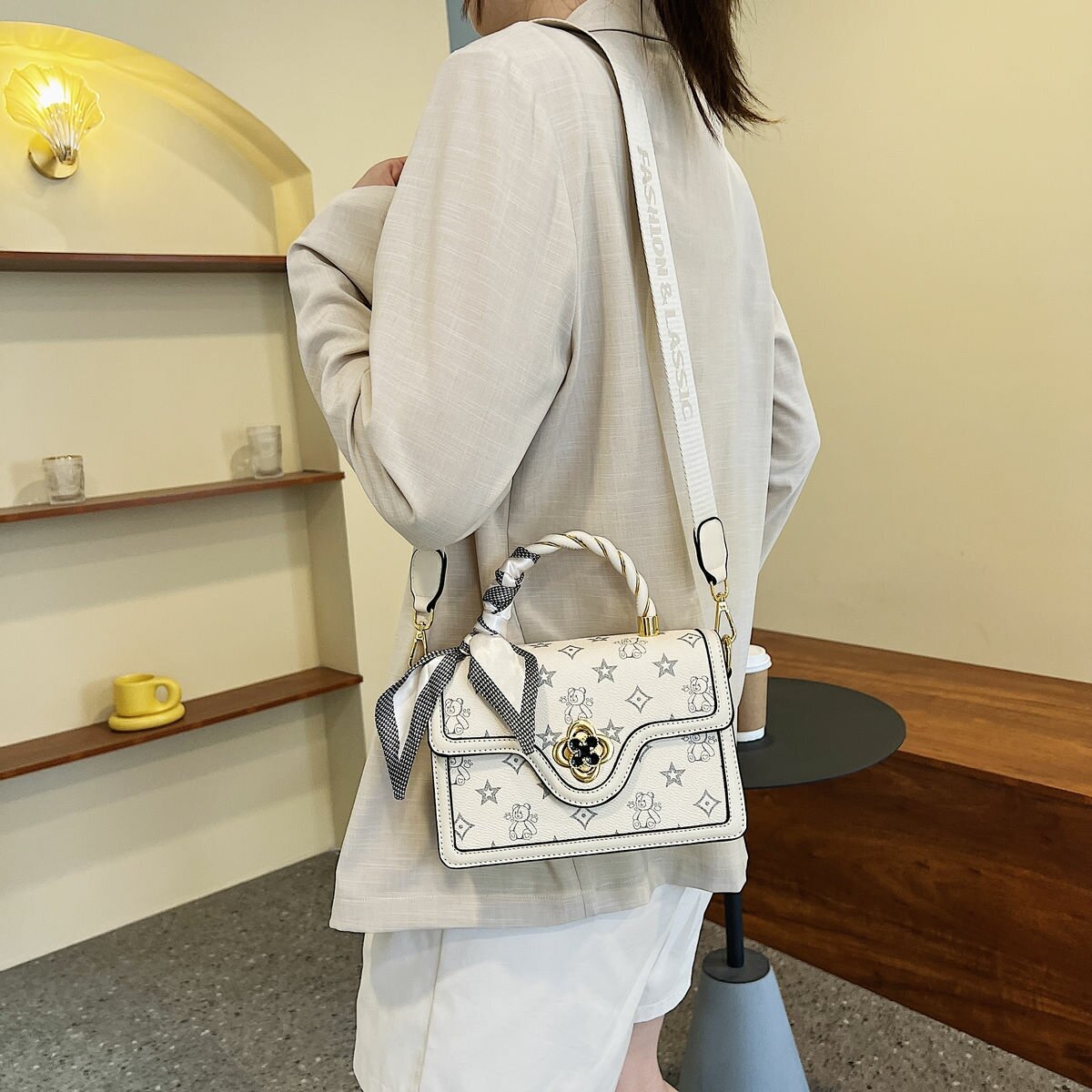 Сумка барсетка BeiBaoBao, фактура матовая, молочный интересное:
