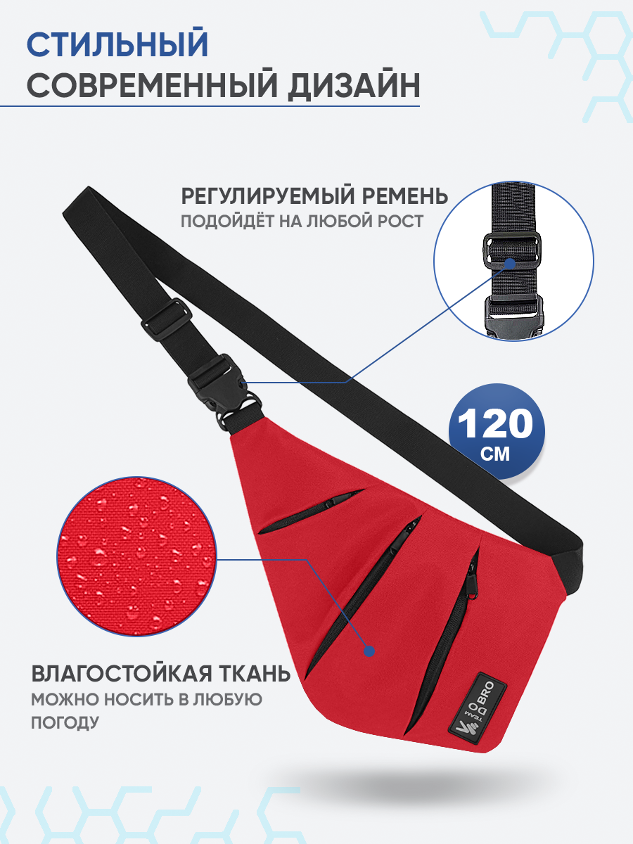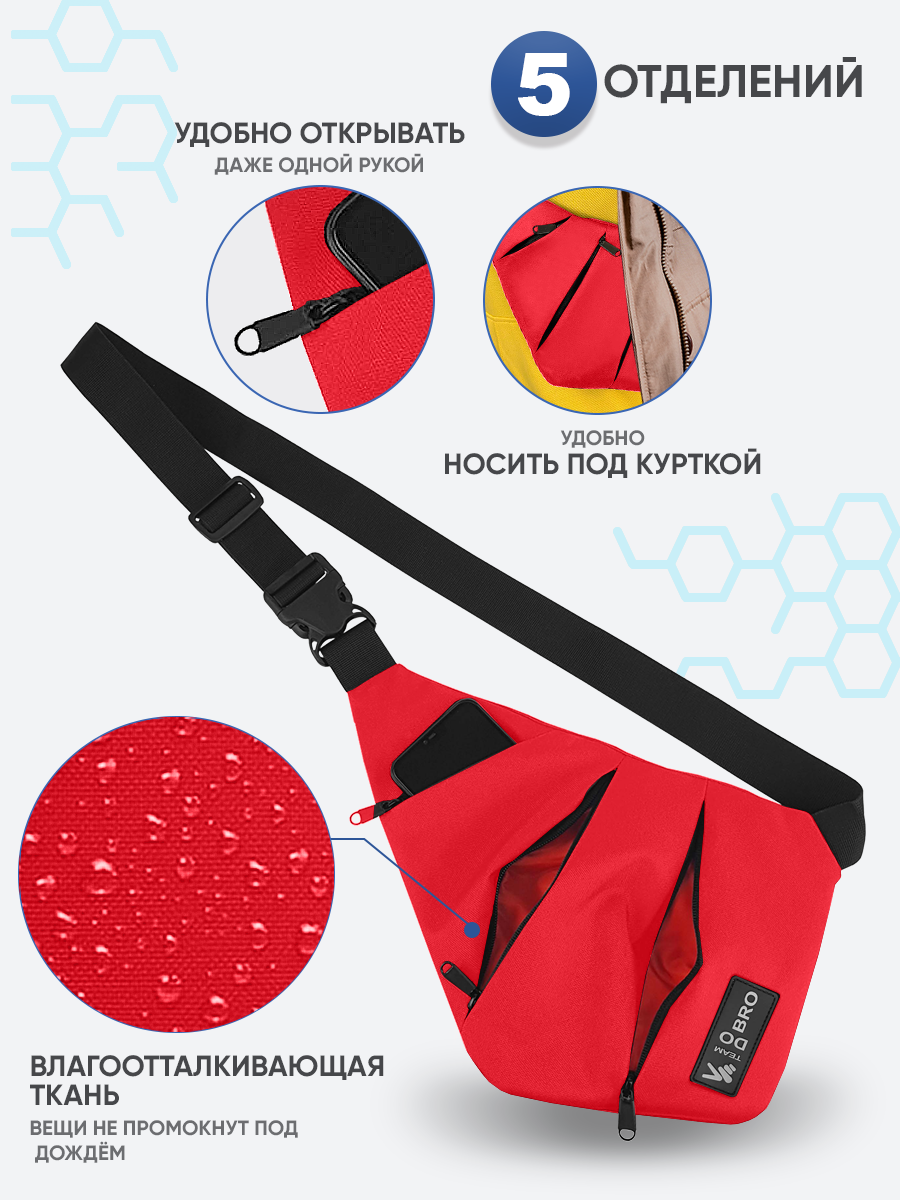 Сумка через плечо Do Bro Hidden красная на плечо мужская подростковая