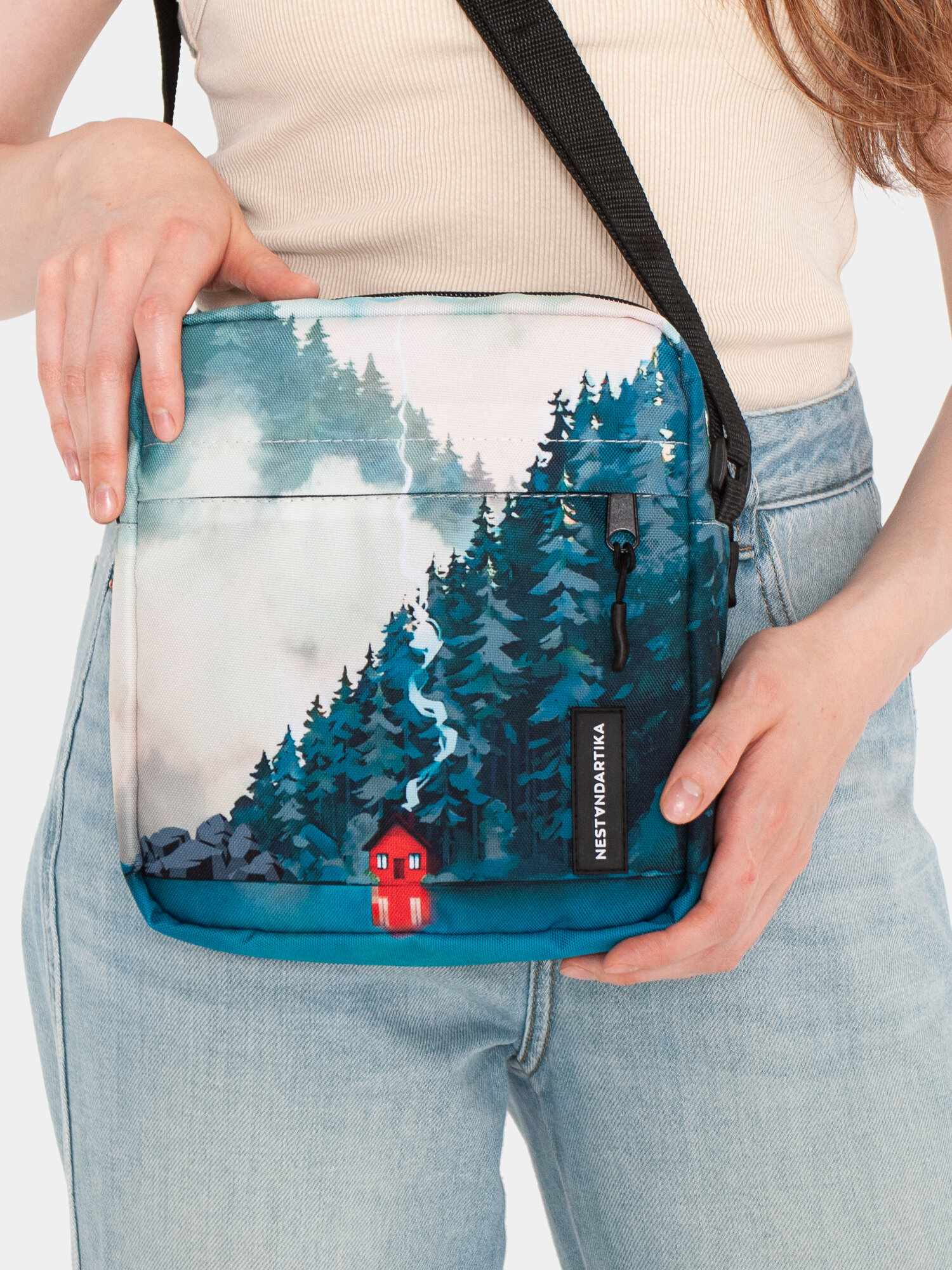 Сумка-мессенджер студенческая через плечо с принтом Домик у озера