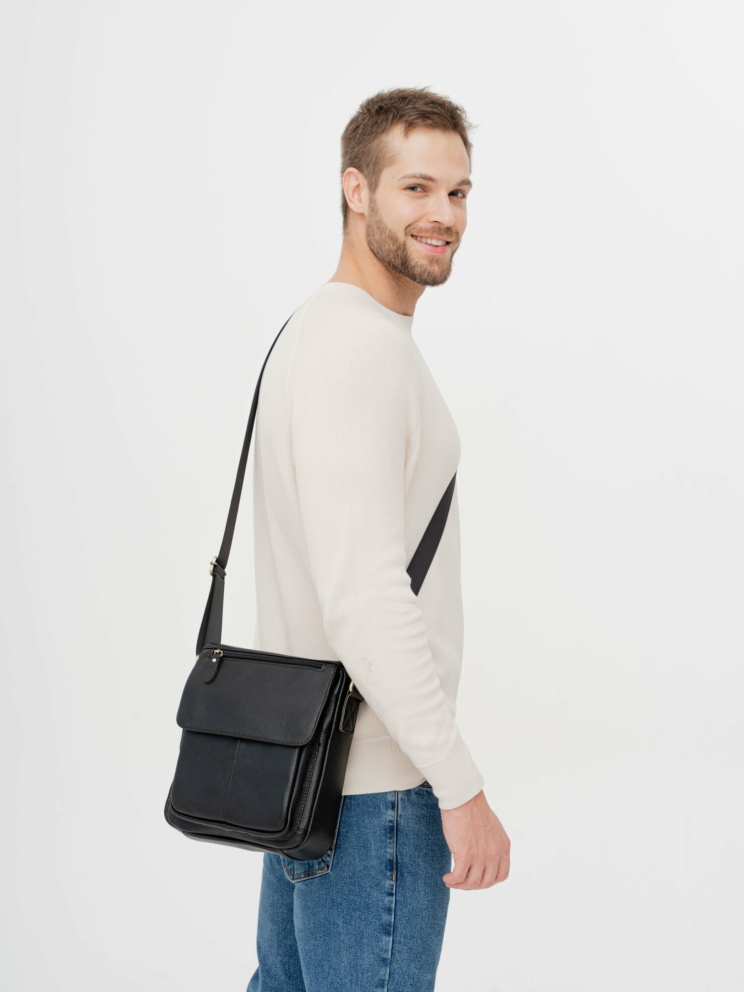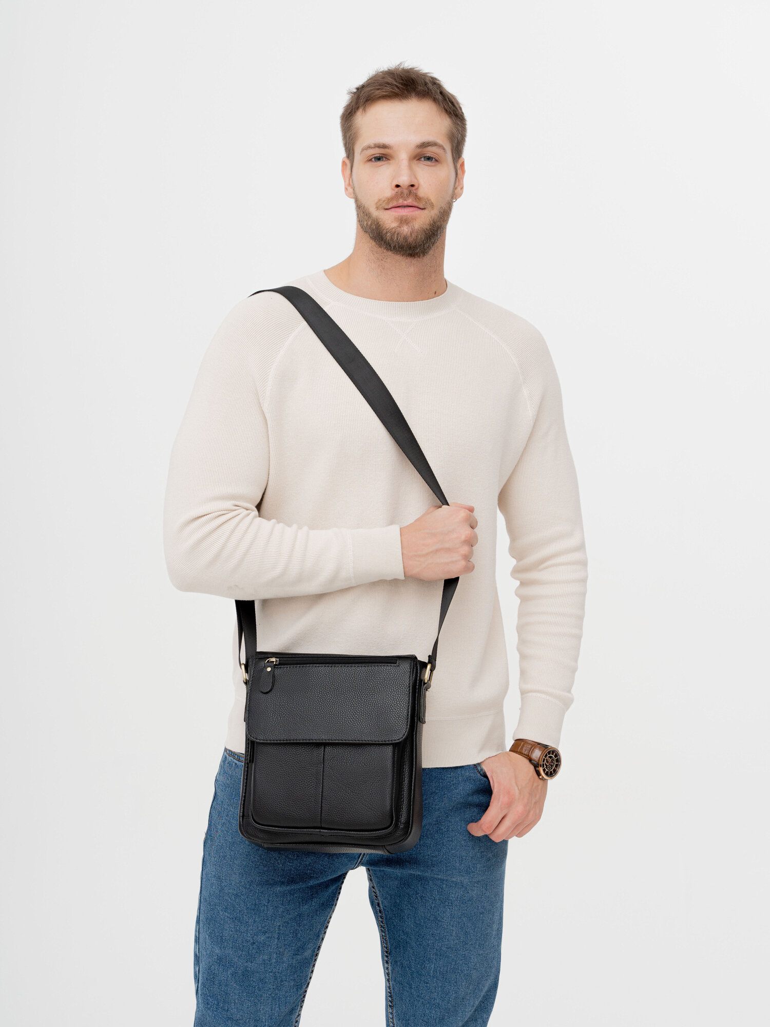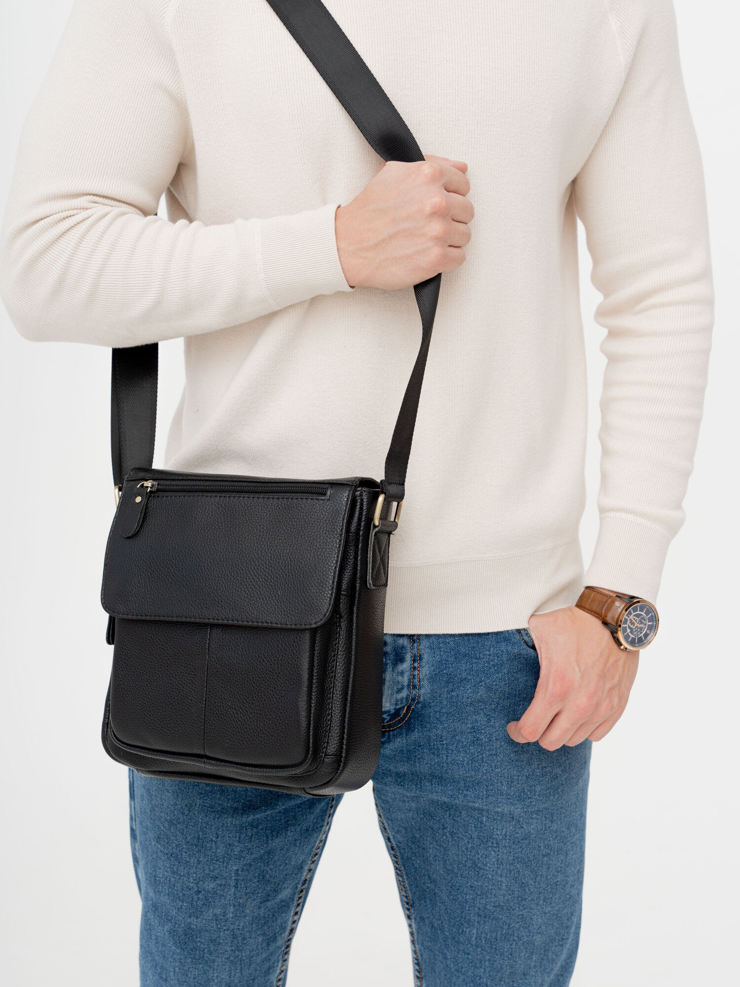 Сумка кожаная через плечо для документов