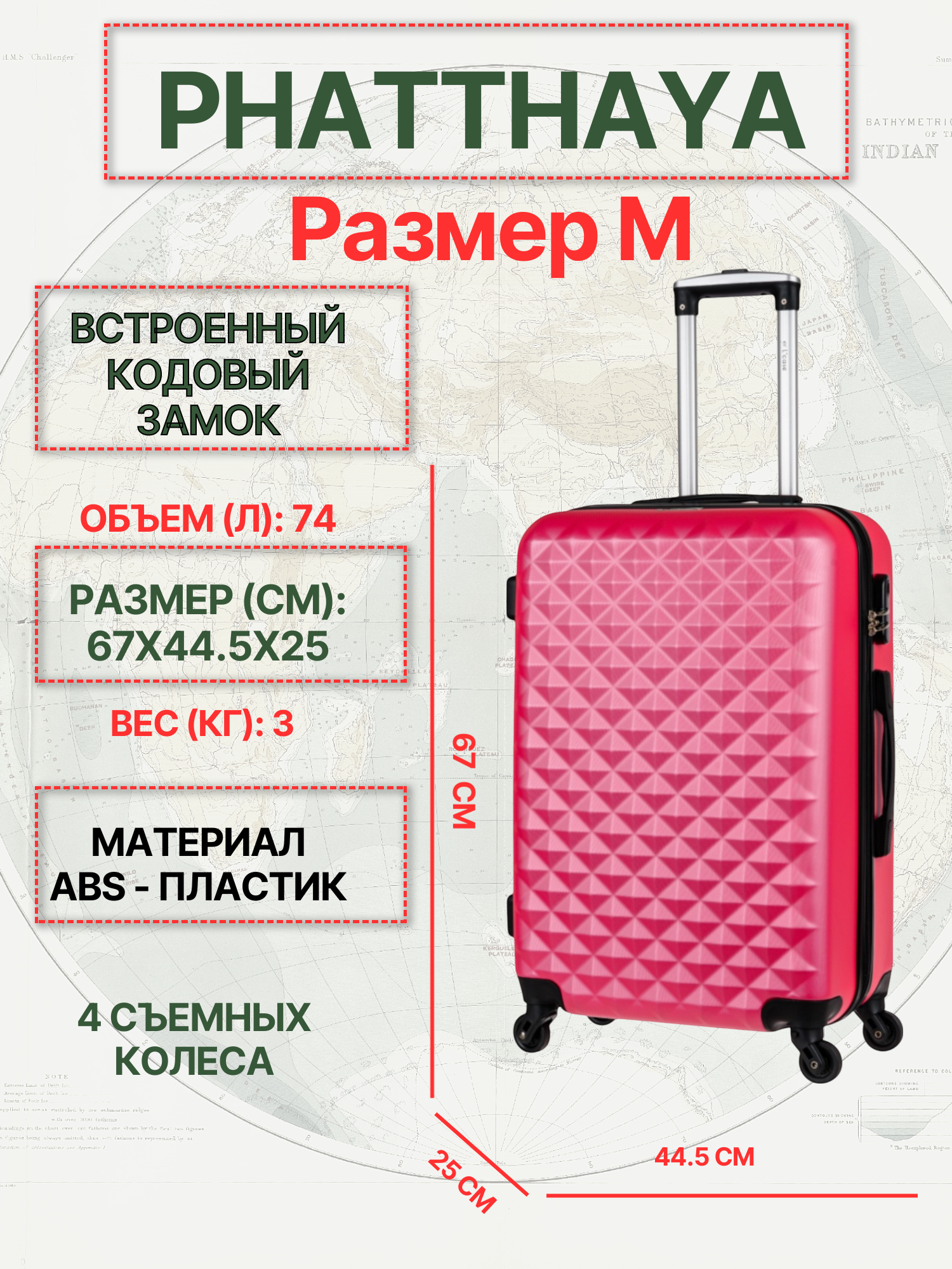 Чемодан на колесах средний М пластиковый Phatthaya дорожный, ударопрочный, съемные колеса, кодовый замок, 65см, 59л