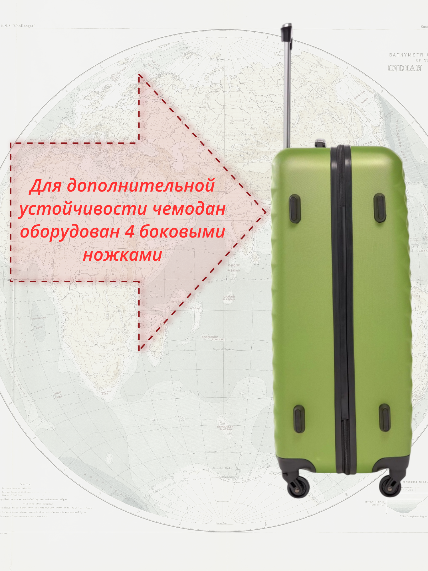 Чемодан на колесах L большой, светло - зеленый - Чемодан ABS - пластик, семейный Lcase