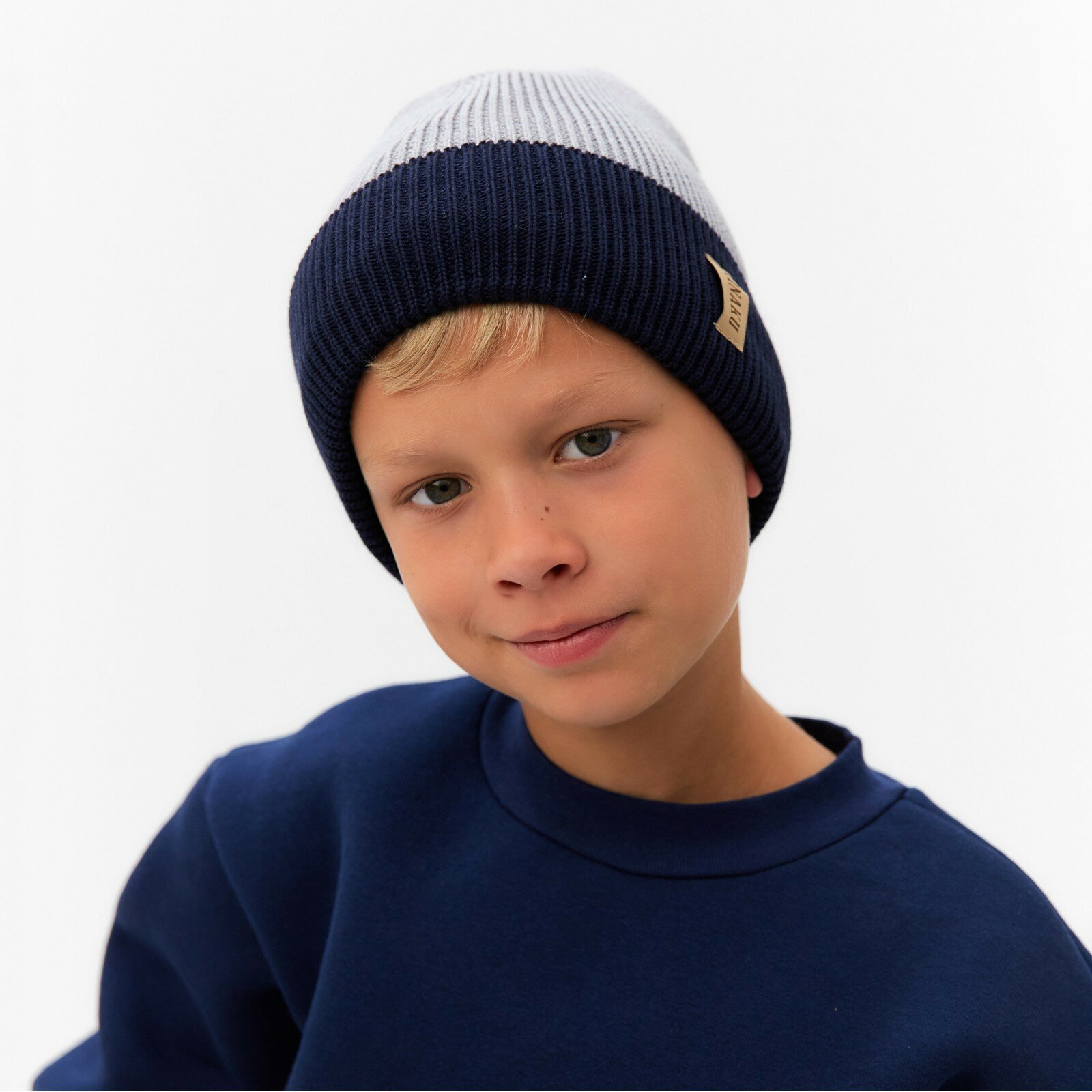 Купить Шапка бини Minaku для мальчиков, размер 54-56, серый/синий
