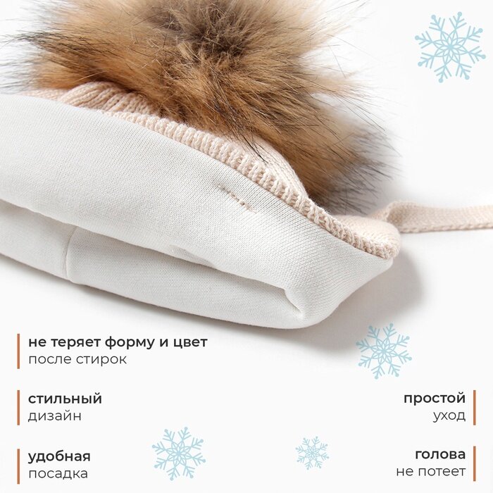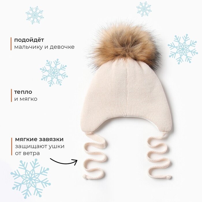 Шапка вязаная детская MINAKU, цвет бежевый, размер 42-44
