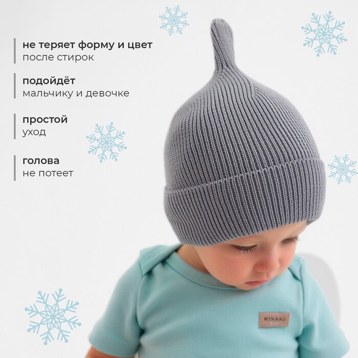 Купить Шапка бини Minaku для детей, размер 46/48, серый