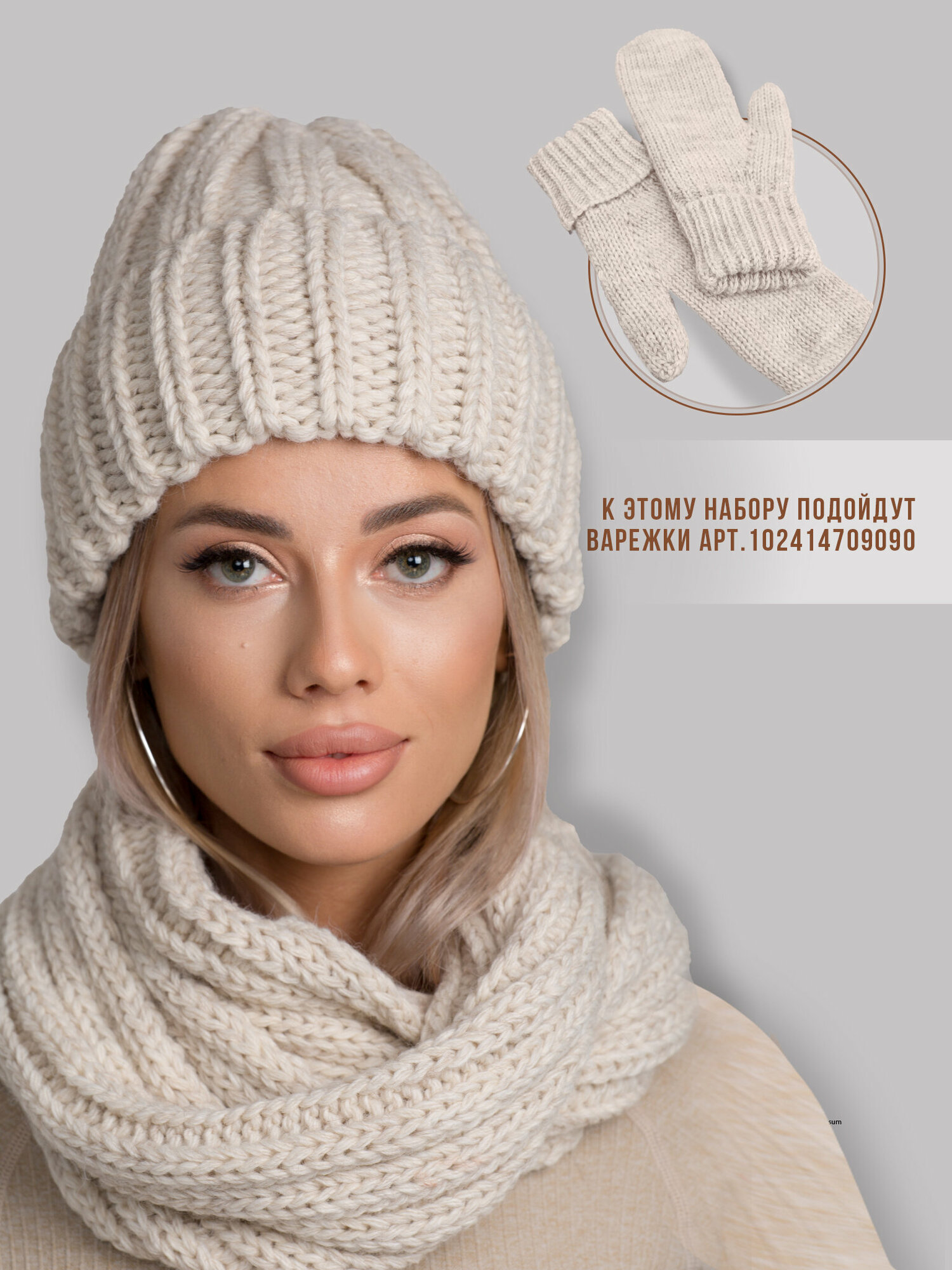 619688843 Комплект (шапка и снуд) женский, шапка вязаная бини с отворотом, теплый шарф зимний объемный