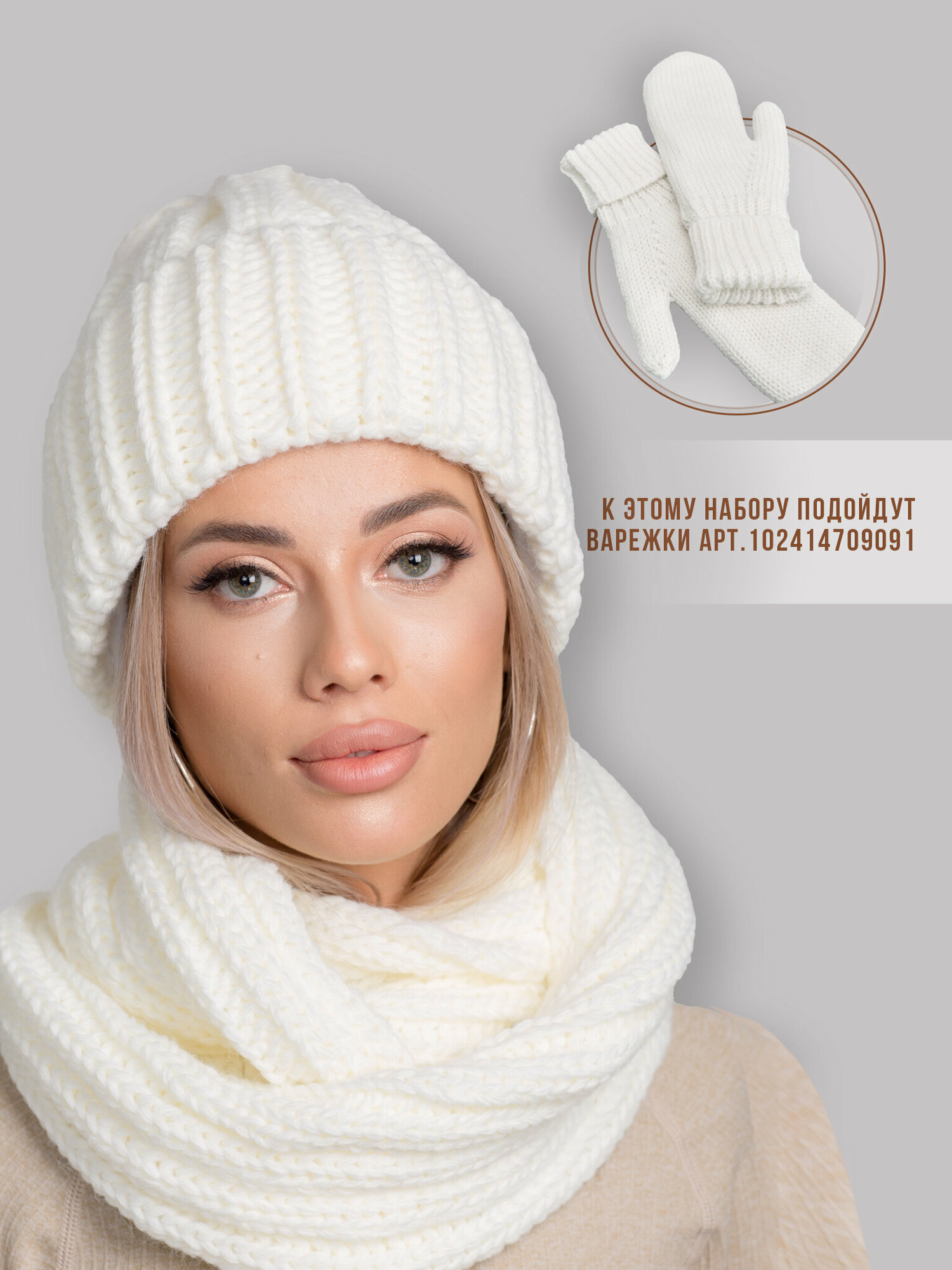 619688843 Комплект (шапка и снуд) женский, шапка вязаная бини с отворотом, теплый шарф зимний объемный
