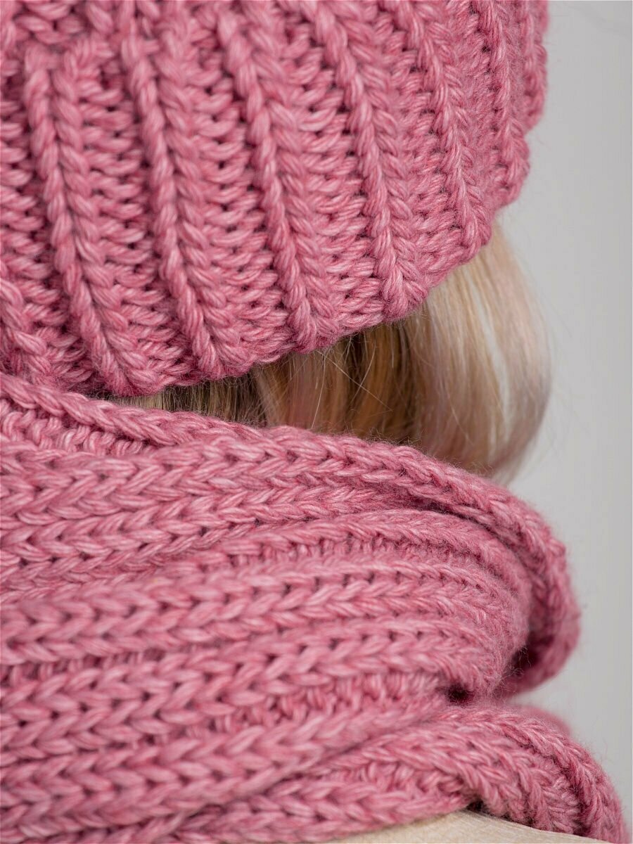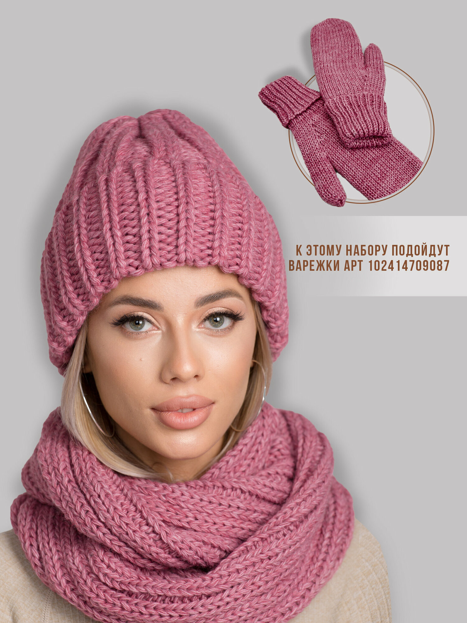 Комплект (шапка и снуд) женский, шапка вязаная бини с отворотом, теплый шарф зимний объемный крупной вязки