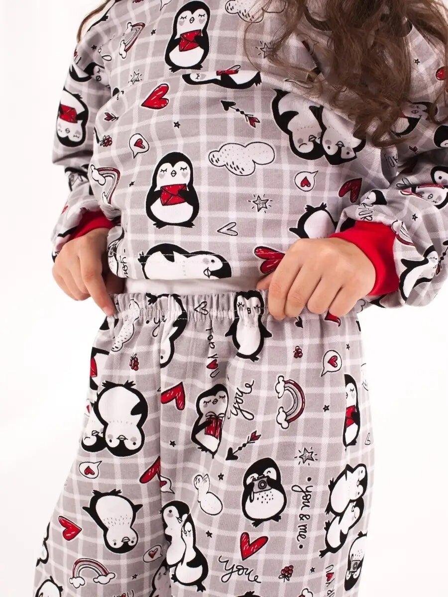Пижама Дети в цвете, размер 36-128, серый/красный