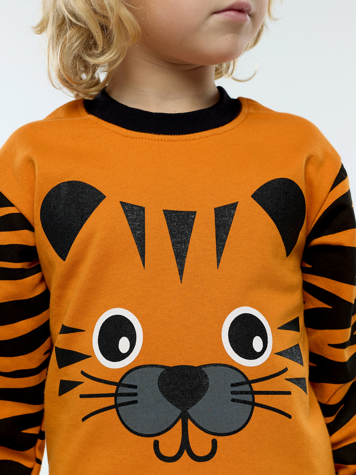 Пижама с начесом, оранжевый тигр, размер 128
