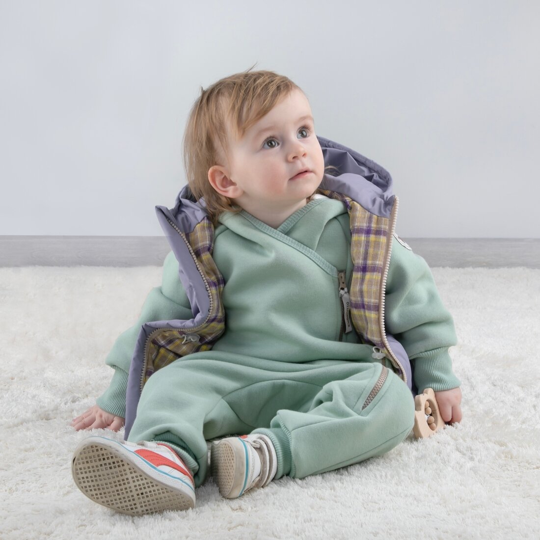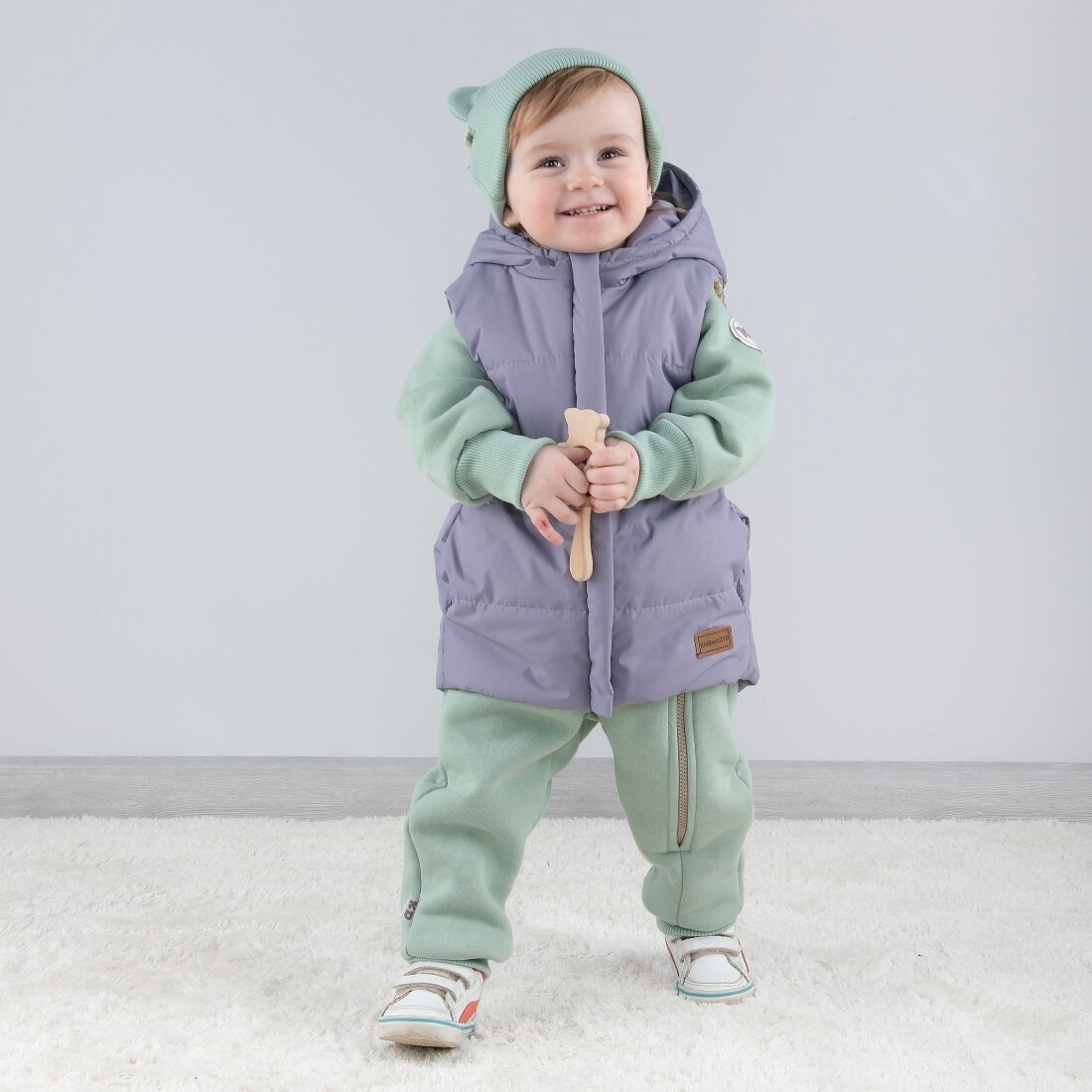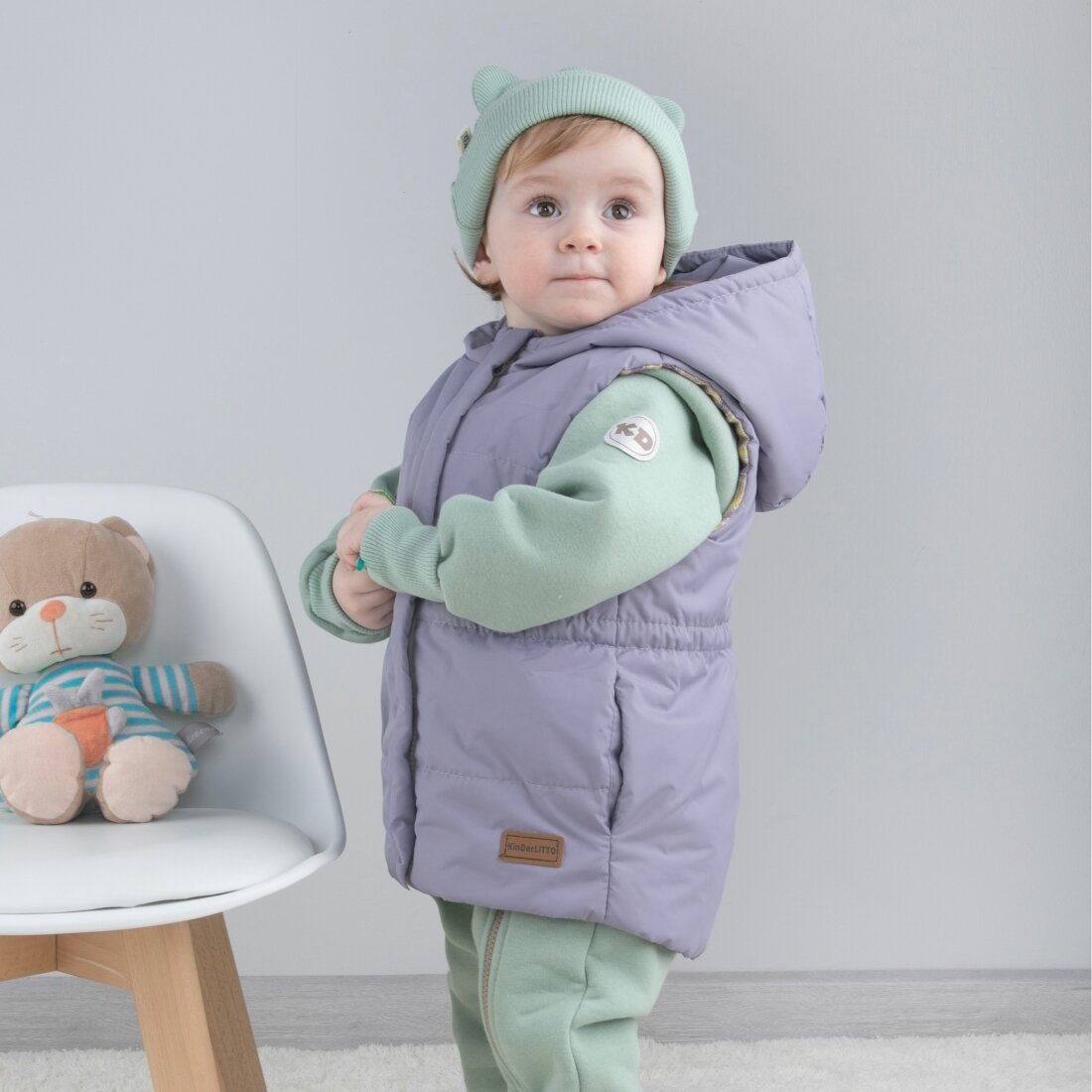 Безрукавка детская утепленная "Жилет Кантри", серо-зеленый, 28