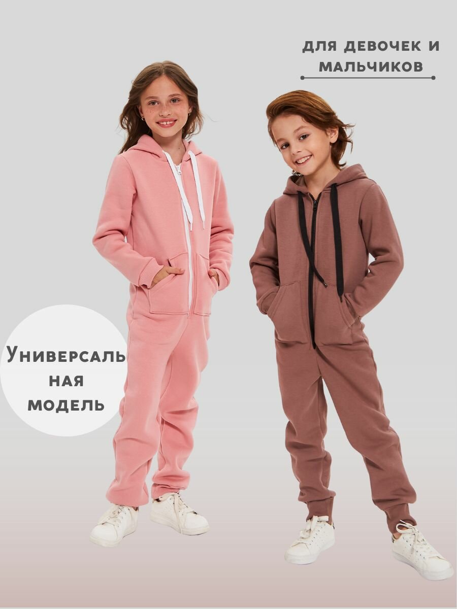 Комбинезон Веселый малыш Утепленный комбинезон футер с начесом , размер 140, мокко