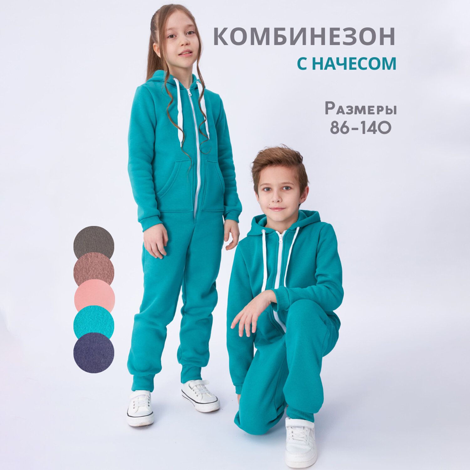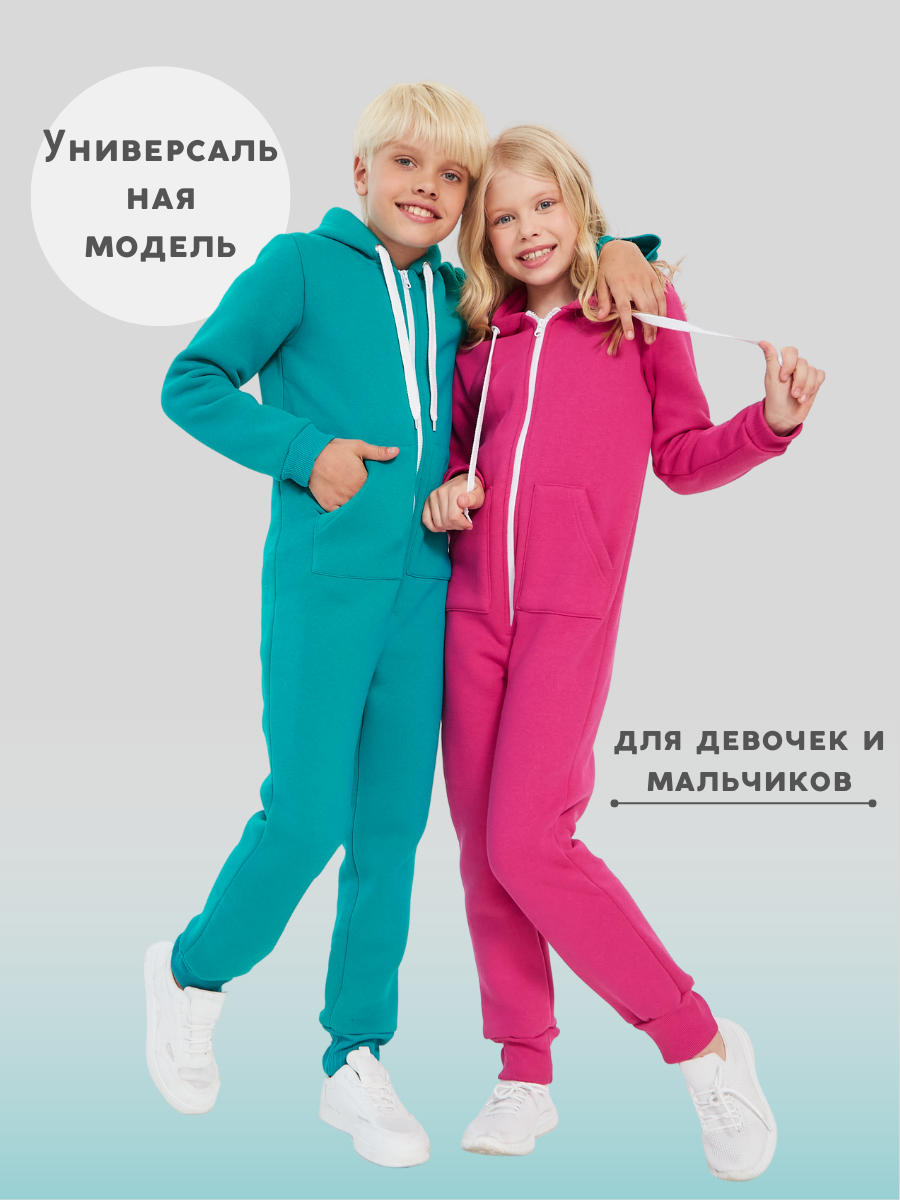 Комбинезон Веселый малыш Утепленный комбинезон футер с начесом , размер 140, Ментоловый
