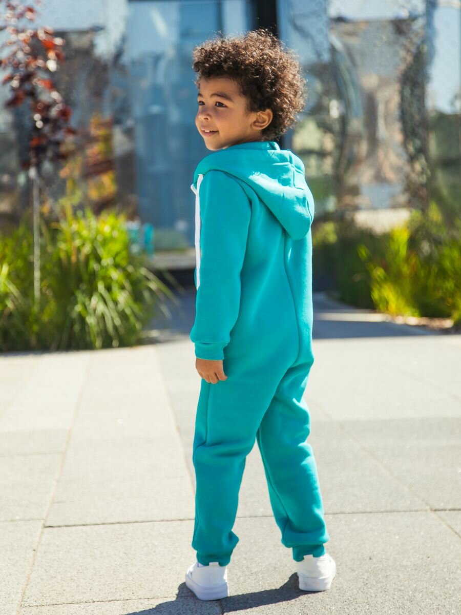Комбинезон Веселый малыш Утепленный комбинезон футер с начесом , размер 128, Ментоловый
