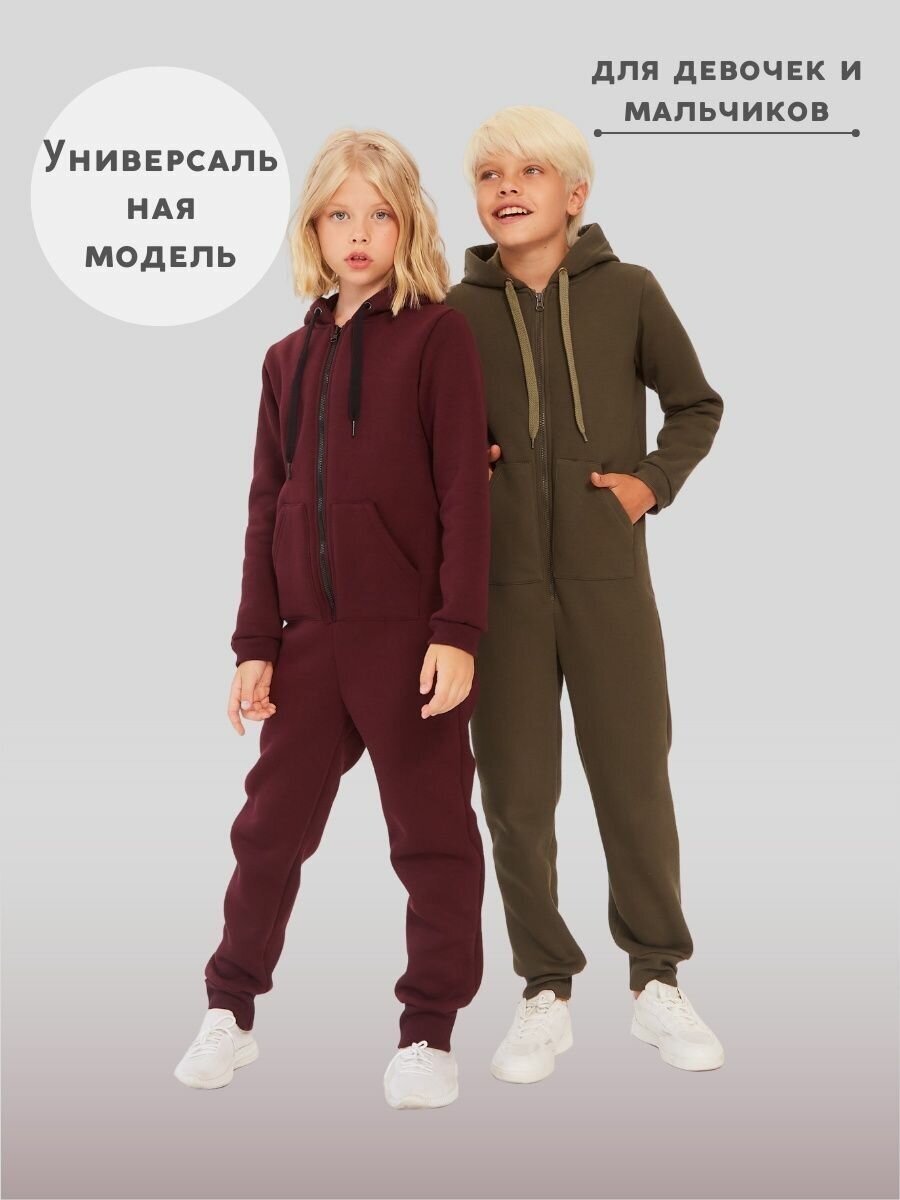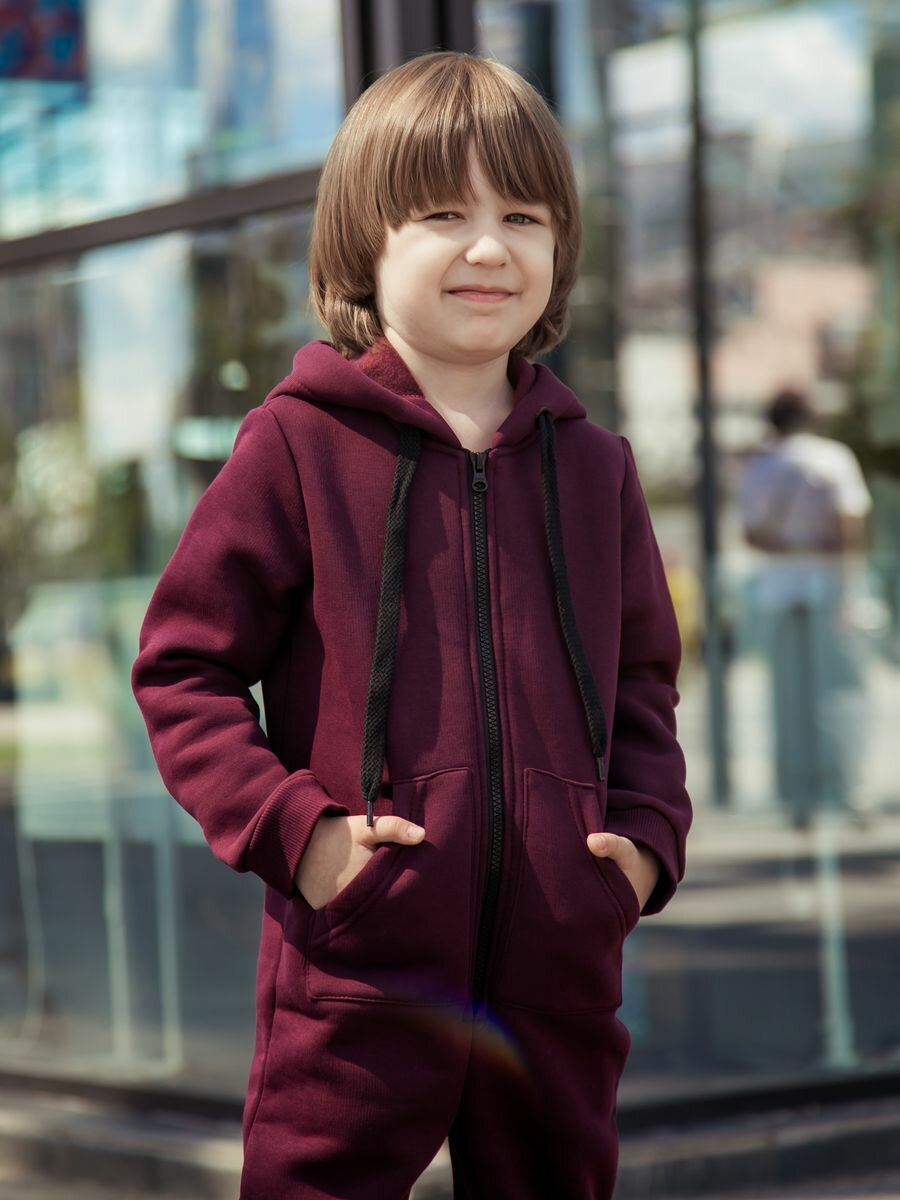 Комбинезон Веселый малыш Утепленный комбинезон футер с начесом , размер 140, бордовый