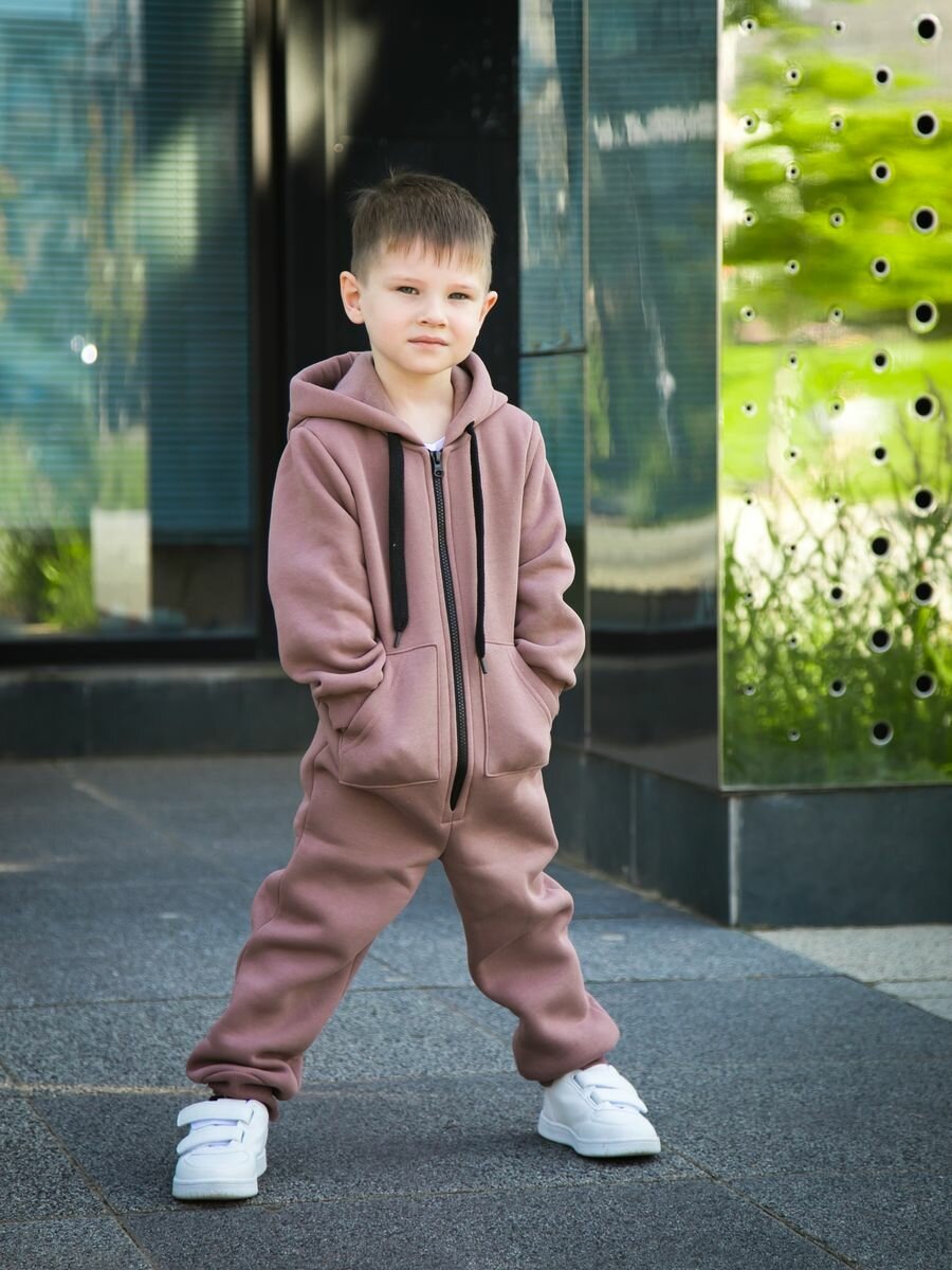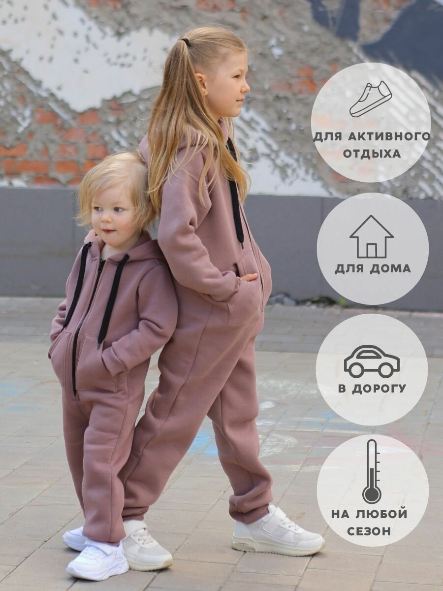 Комбинезон Веселый малыш Утепленный комбинезон футер с начесом , размер 134, мокко