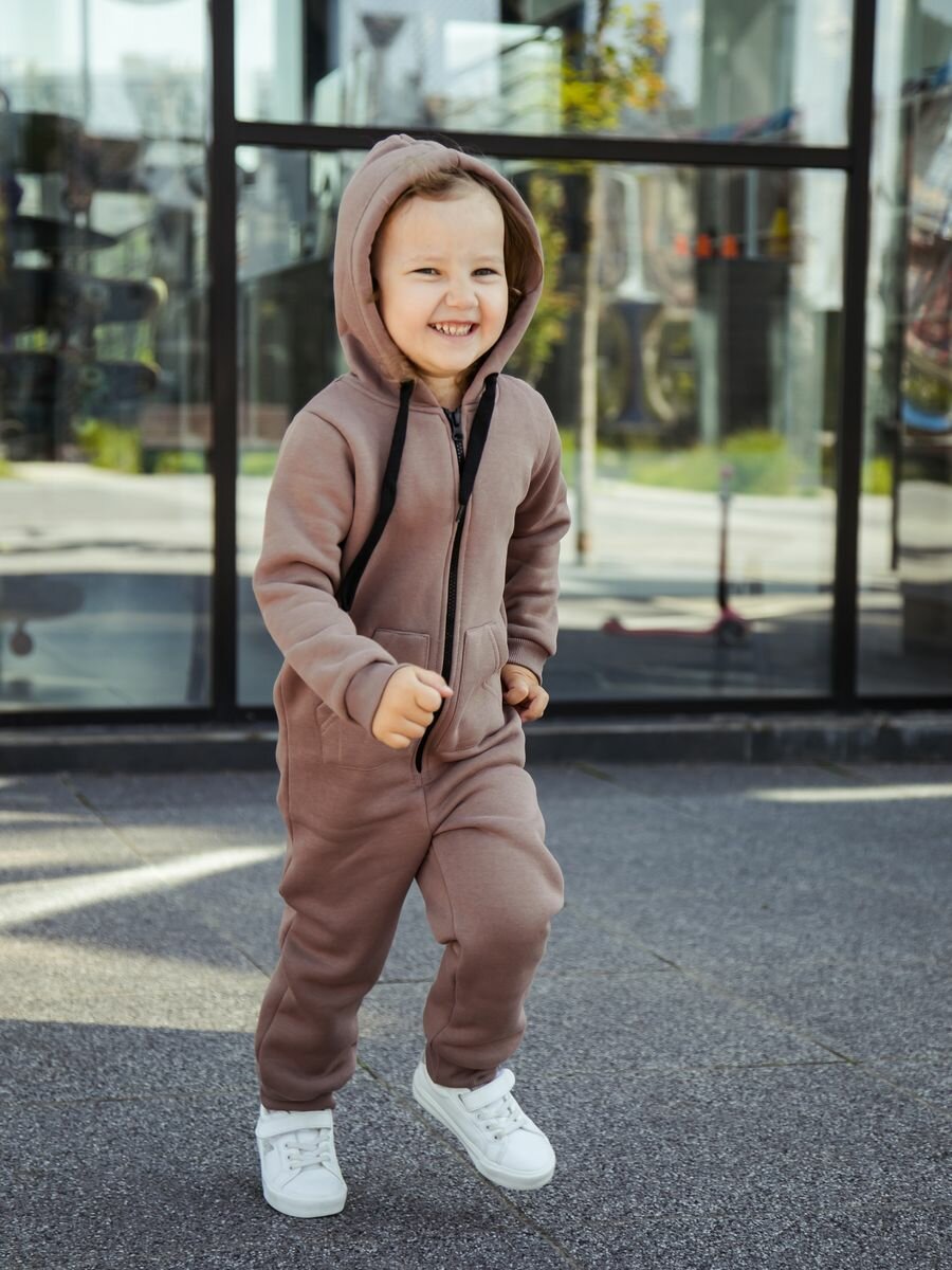 Комбинезон Веселый малыш Утепленный комбинезон футер с начесом , размер 98, мокко