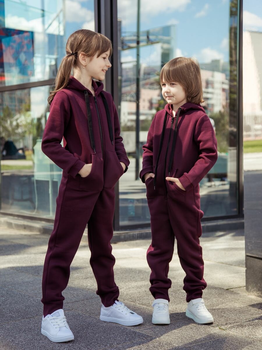 Комбинезон Веселый малыш Утепленный комбинезон футер с начесом , размер 140, бордовый