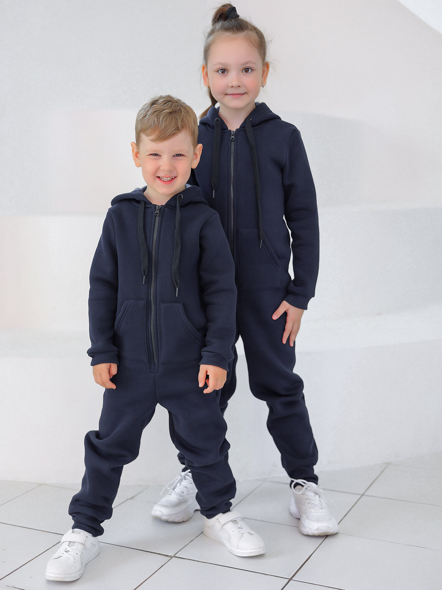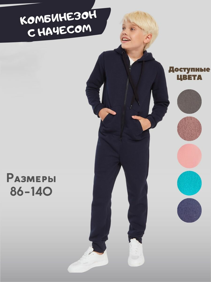 Комбинезон Веселый малыш Утепленный комбинезон футер с начесом , размер 140, Темно-синий